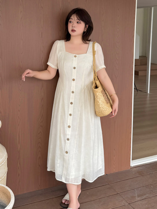 大きいサイズ レディース スクエアネックハートボタンワンピース LL 3L 4L 5L