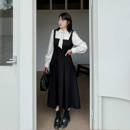 大きいサイズ レディース ハイネックインナーシャツ+サスペンダーワンピース2点セット LL 3L 4L 5L 6L