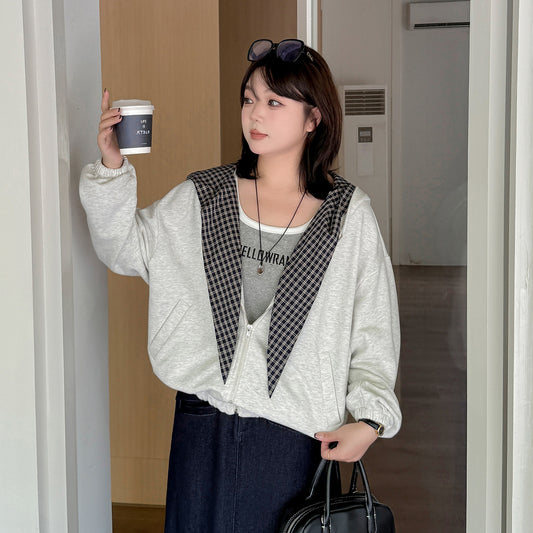 大きいサイズ レディース チェック柄リボンカジュアルパーカージャケット LL 3L 4L 5L