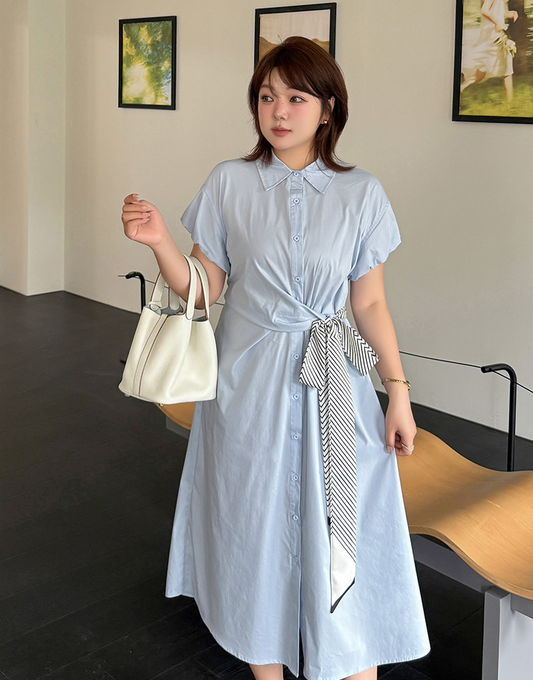 大きいサイズ レディース ラペルチェック柄ボタンダウンベルト付きワンピース LL 3L 4L 5L