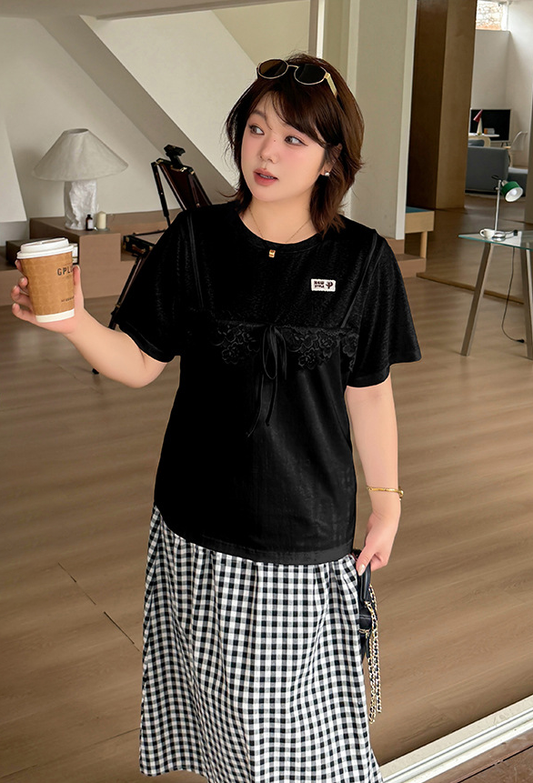 大きいサイズ レディース レースインナーシャツ+ガーリーフリルサスペンダーワンピース2点セット LL 3L 4L 5L