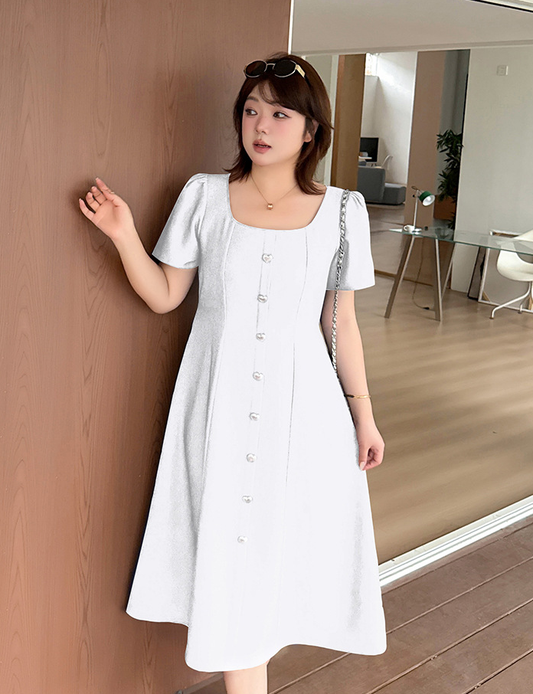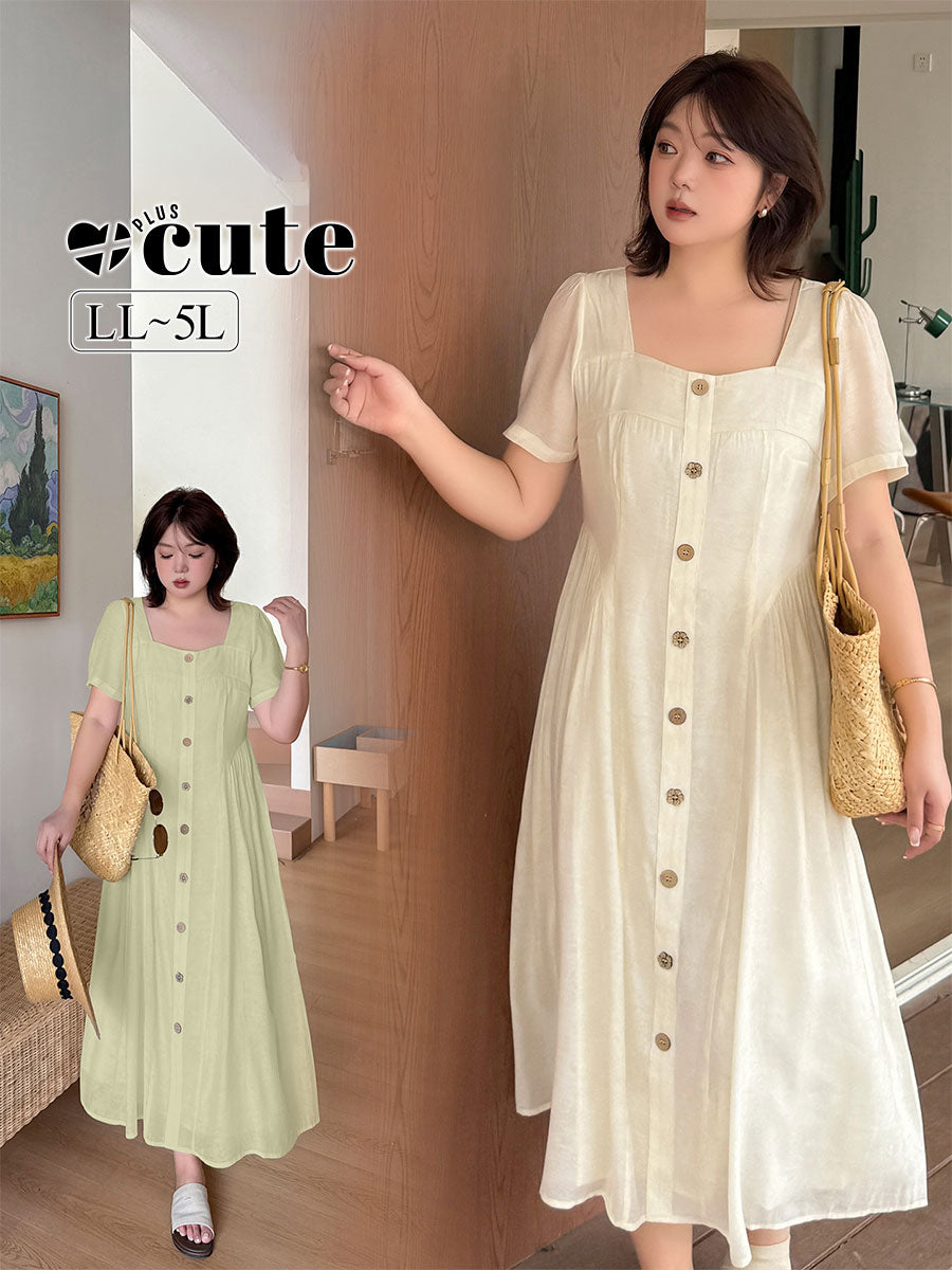 大きいサイズ レディース 小花ボタン飾りコットンフリルワンピース LL 3L 4L 5L