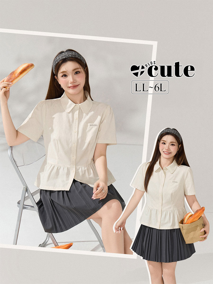 大きいサイズ レディース サイドリングバックル半袖カラーシャツ LL 3L 4L 5L 6L