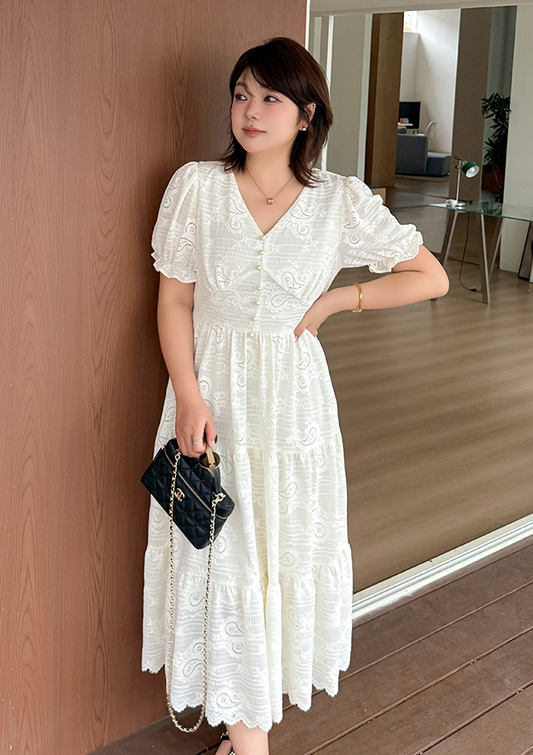 大きいサイズ レディース Vネックペイズリーレースティアードワンピース LL 3L 4L 5L