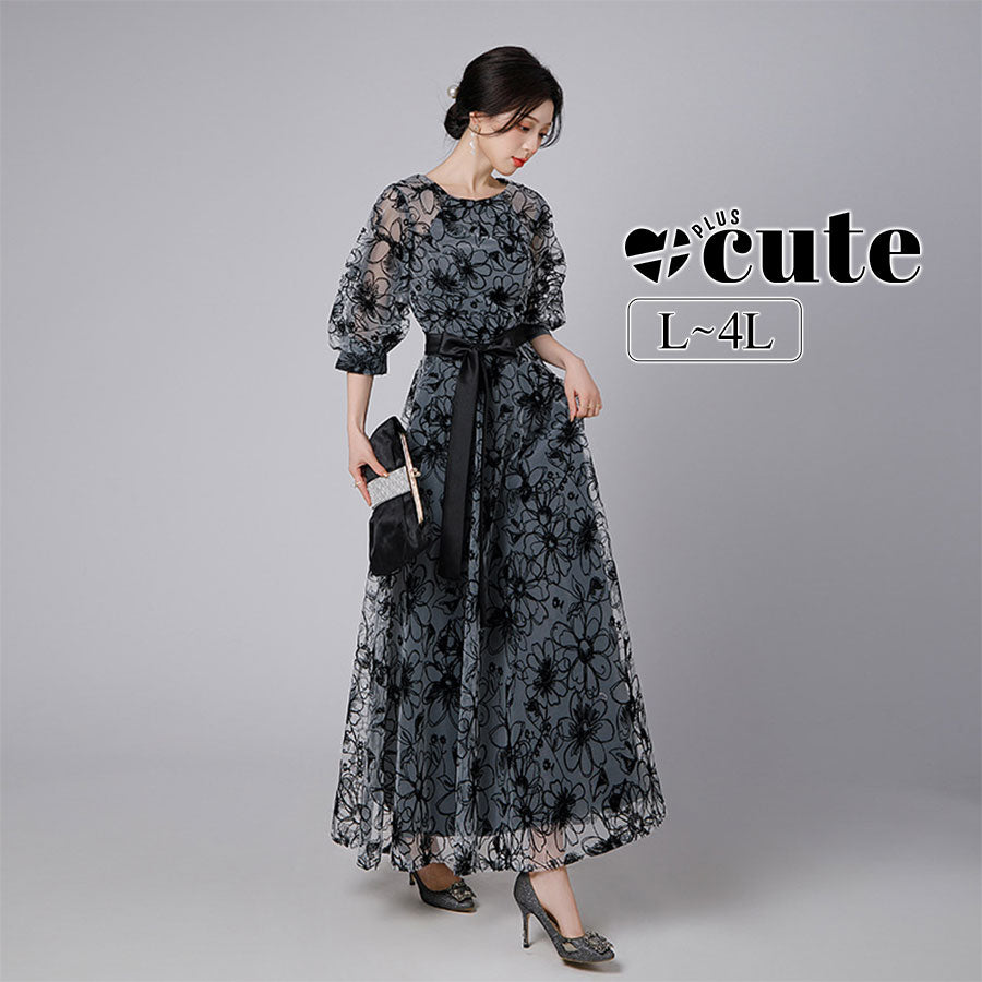 大きいサイズ レディース 七分袖シースルーオケージョンワンピース L LL 3L 4L