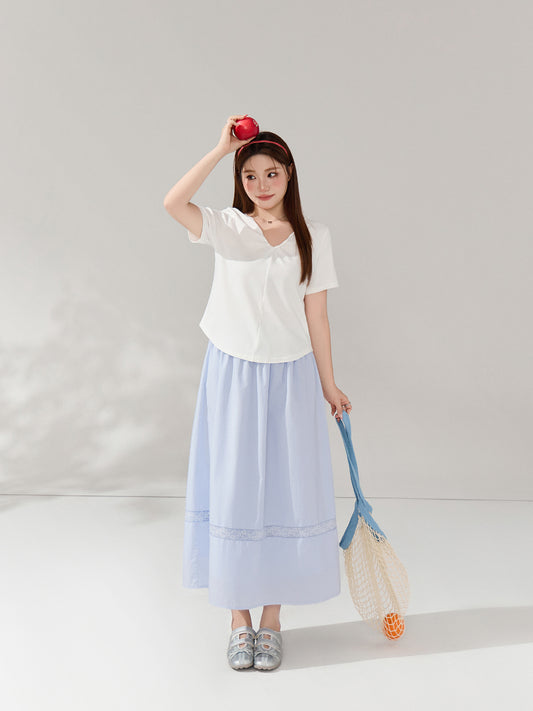 大きいサイズ レディース レースパッチワークライトブルースカート LL 3L 4L 5L 6L