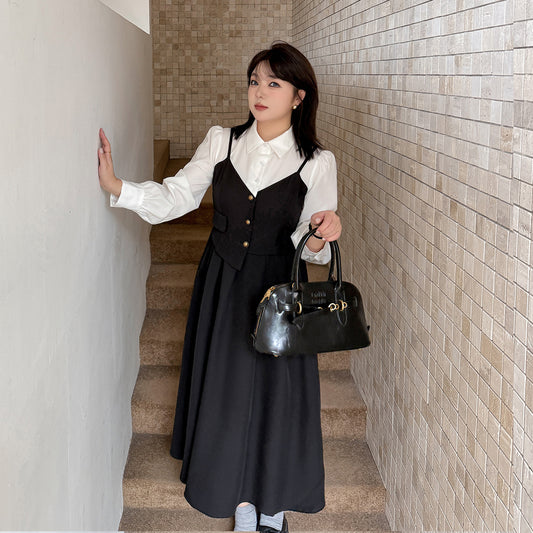 大きいサイズ レディース セットアップ(ニットベスト+ブラックシャツ+スカート別売)LL 3L 4L 5L
