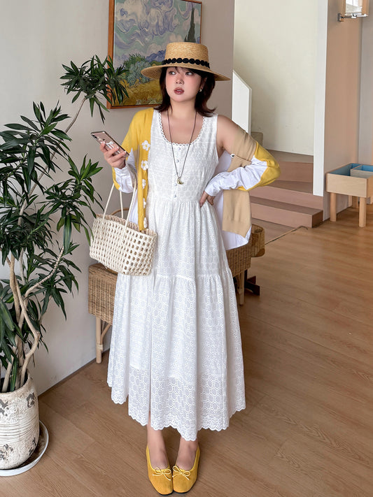 大きいサイズ レディース ホワイトノースリーブレースティアードワンピース LL 3L 4L 5L