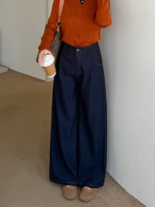 大きいサイズ レディース デニム風プリーツストレートワイドレッグパンツ LL 3L 4L 5L
