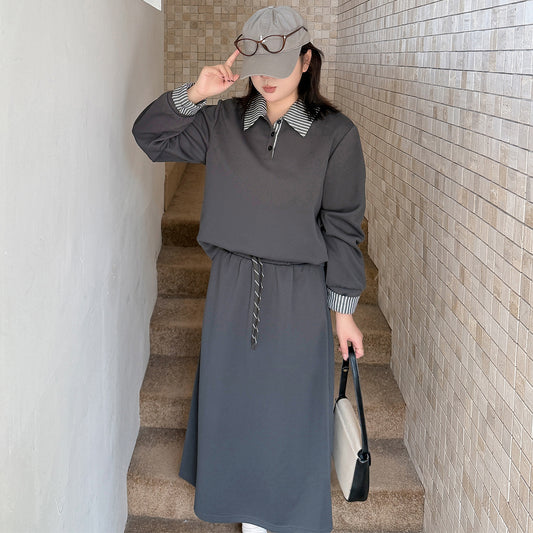 大きいサイズ レディース ストライプラペルセットアップ(スウェットシャツ+スカート) LL 3L 4L 5L