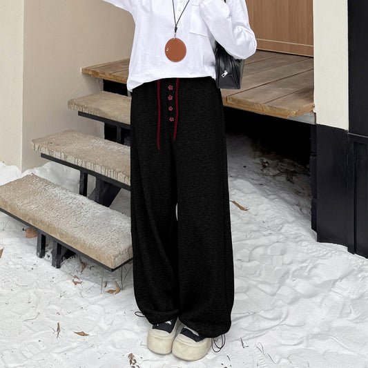 大きいサイズ レディース リボンレースアップニットワイドパンツ LL 3L 4L 5L