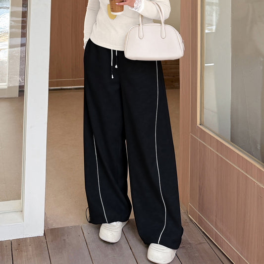大きいサイズ レディース 裏起毛配色パイピングカジュアルパンツ LL 3L 4L 5L