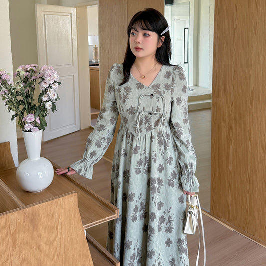 大きいサイズ レディース Vネック花柄プリントチャイナ風レトロワンピース LL 3L 4L 5L