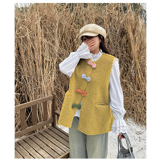 大きいサイズ レディース ラウンドネックレースフリルリボンベスト 3L 4L 5L