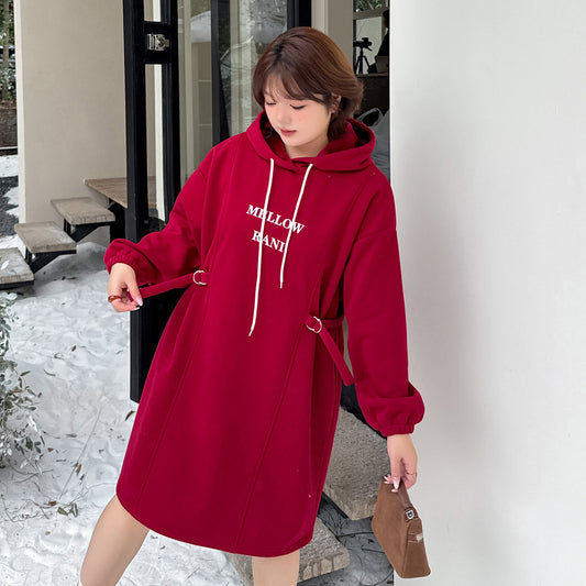 大きいサイズ レディース ウエストバックル付きカジュアルパーカースウェットワンピース 3L 4L 5L