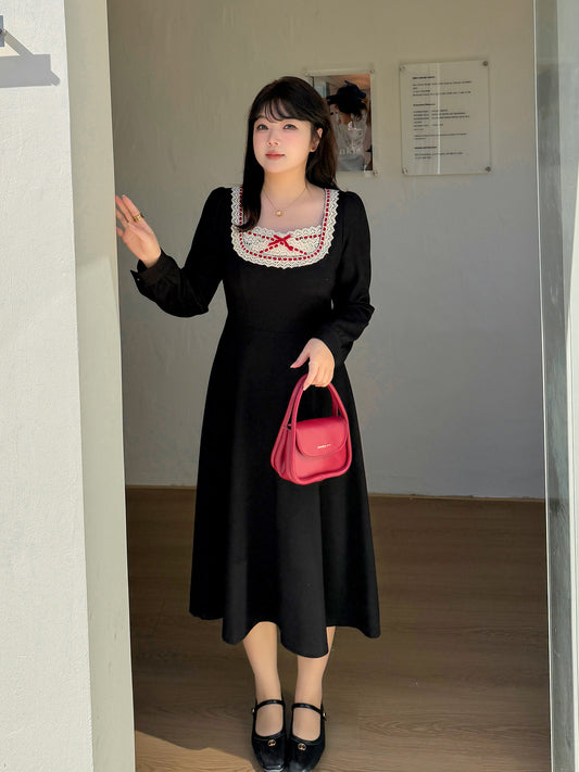 大きいサイズ レディース スクエアネックリボンレースワンピース LL 3L 4L 5L