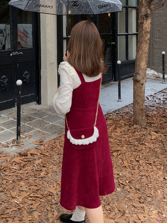 大きいサイズ レディース コーデュロイのレトロワンピース+フリルパフスリーブブラウス LL 3L 4L 5L
