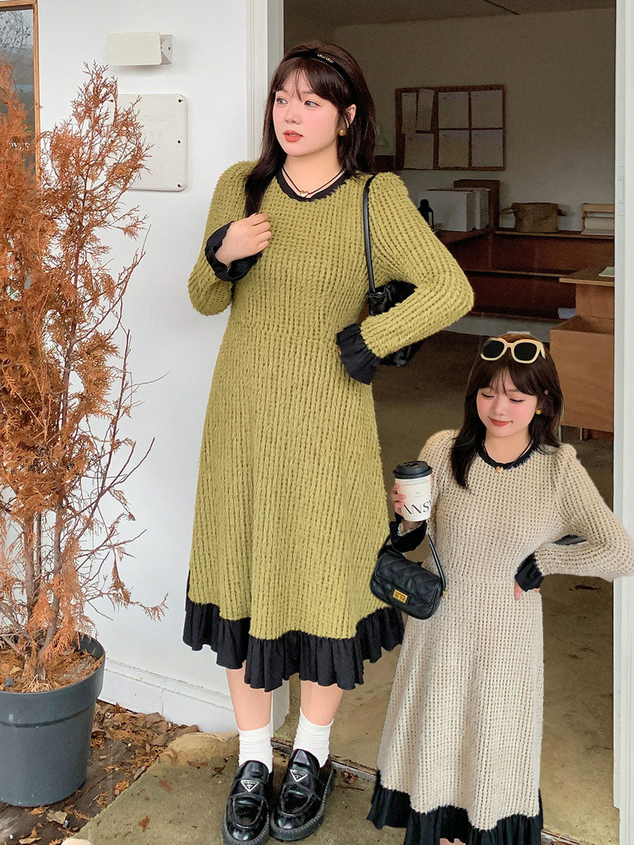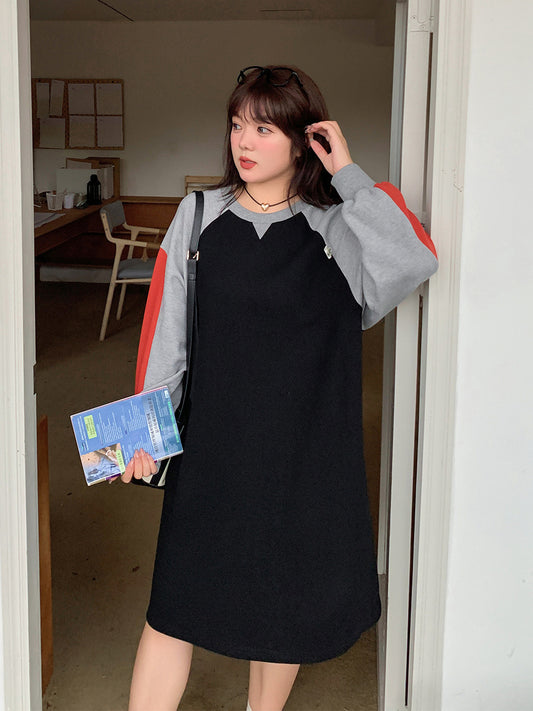大きいサイズ レディース ラウンドネックのカラーブロックスウェットワンピース LL 3L 4L 5L