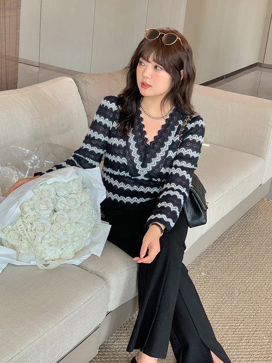大きいサイズ レディース Vネックレースブラウスニットシャツ LL 3L 4L 5L
