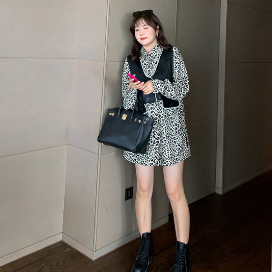 大きいサイズ レディース レオパード柄シャツ ベストセット LL 3L 4L 5L