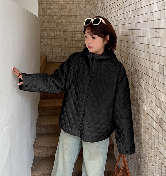 大きいサイズ レディース 軽量フード付きラメクロスステッチキルティングジャケット 3L 4L 5L
