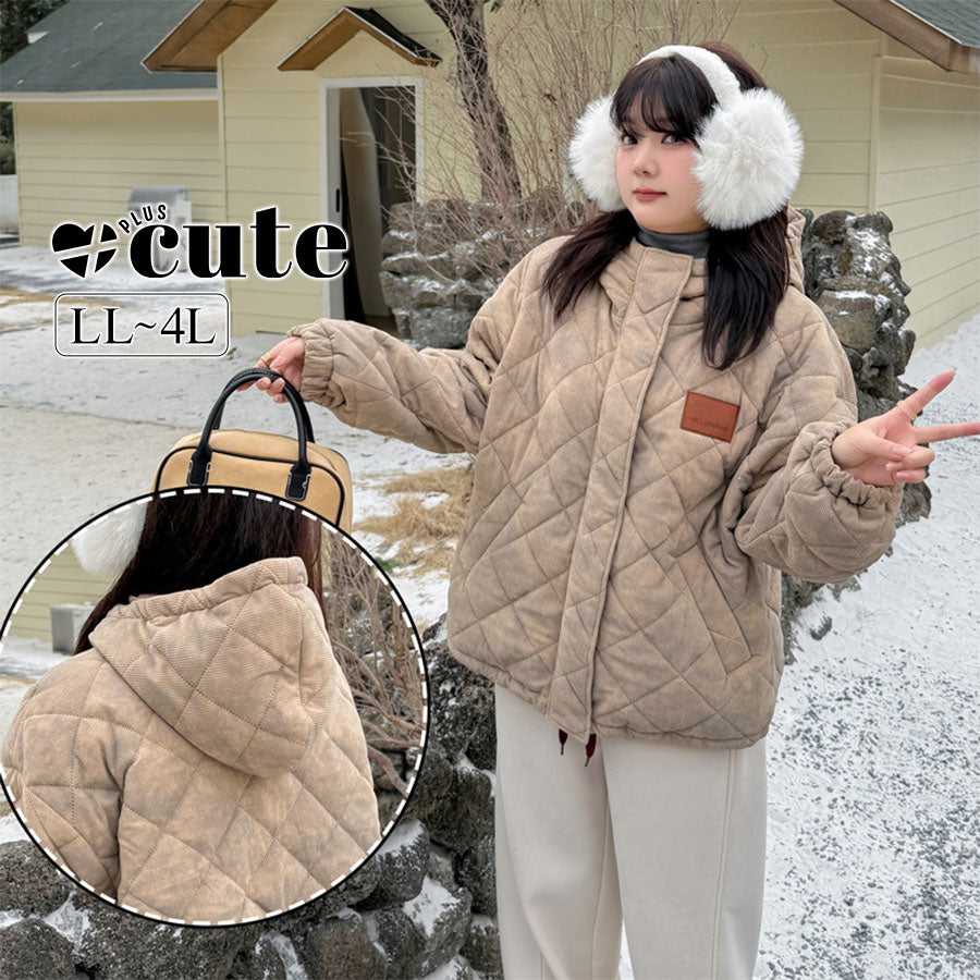 大きいサイズ レディース フード付きカジュアルコーデュロイコットンジャケットコート LL 3L 4L