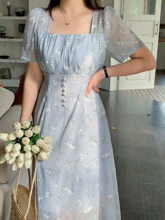 大きいサイズ レディース スクエアネックパフスリーブフレッシュロングドレス LL 3L 4L 5L