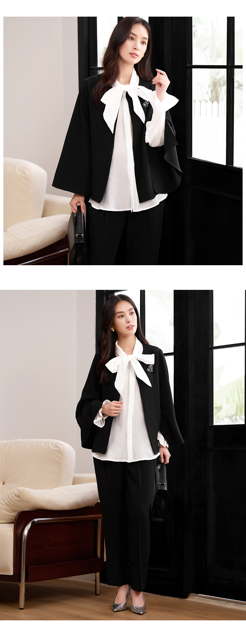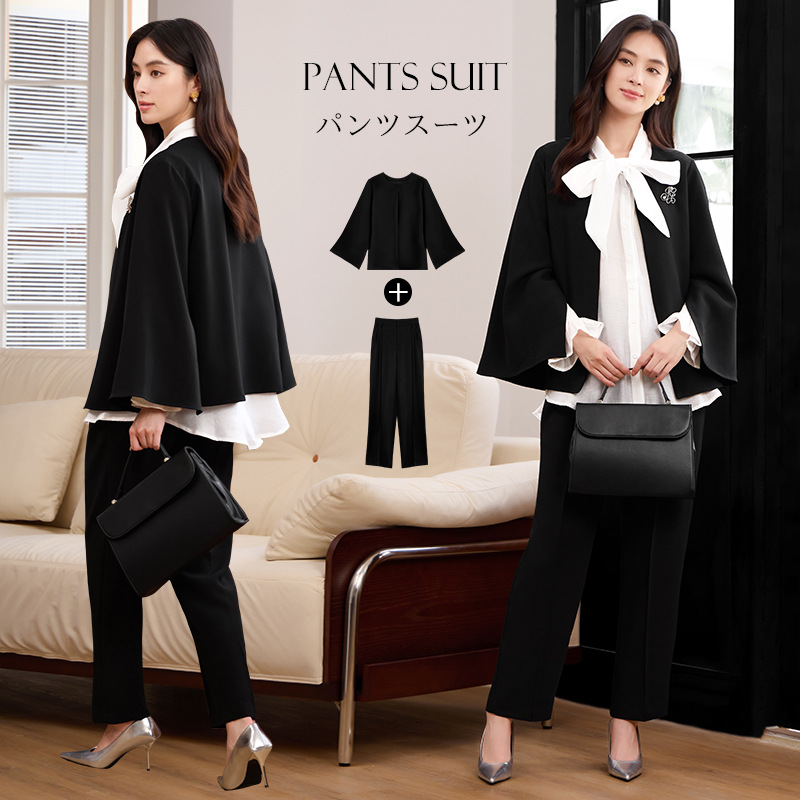 春夏の大人コーデ、これ一着で決まります。エレガントなケープ風フレアスリーブセットアップ。オフィスからパーティーまで全シーン対応します。シーンに合わせた着こなしが楽しめます。