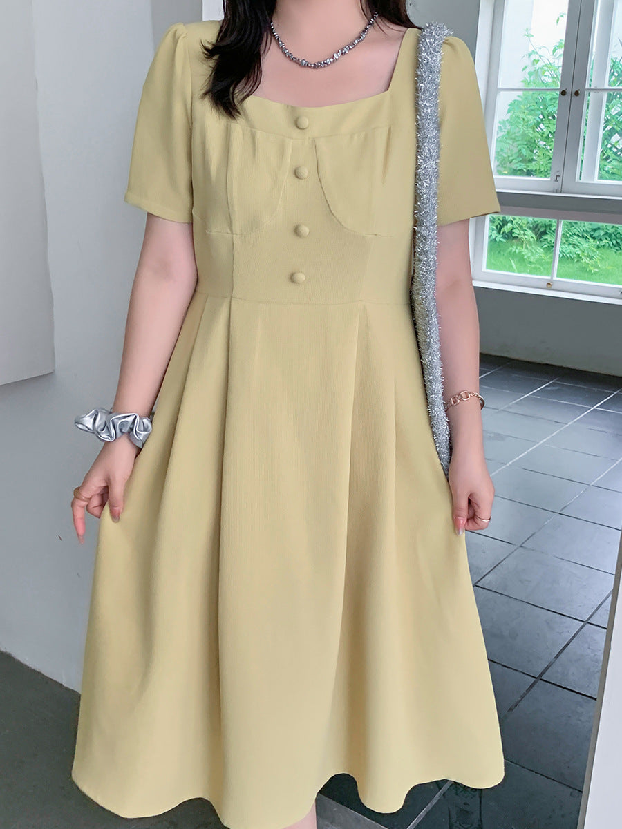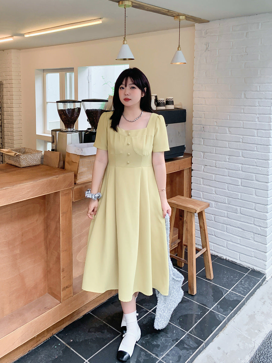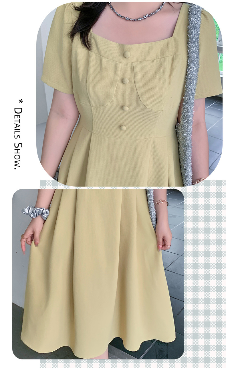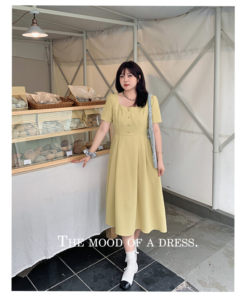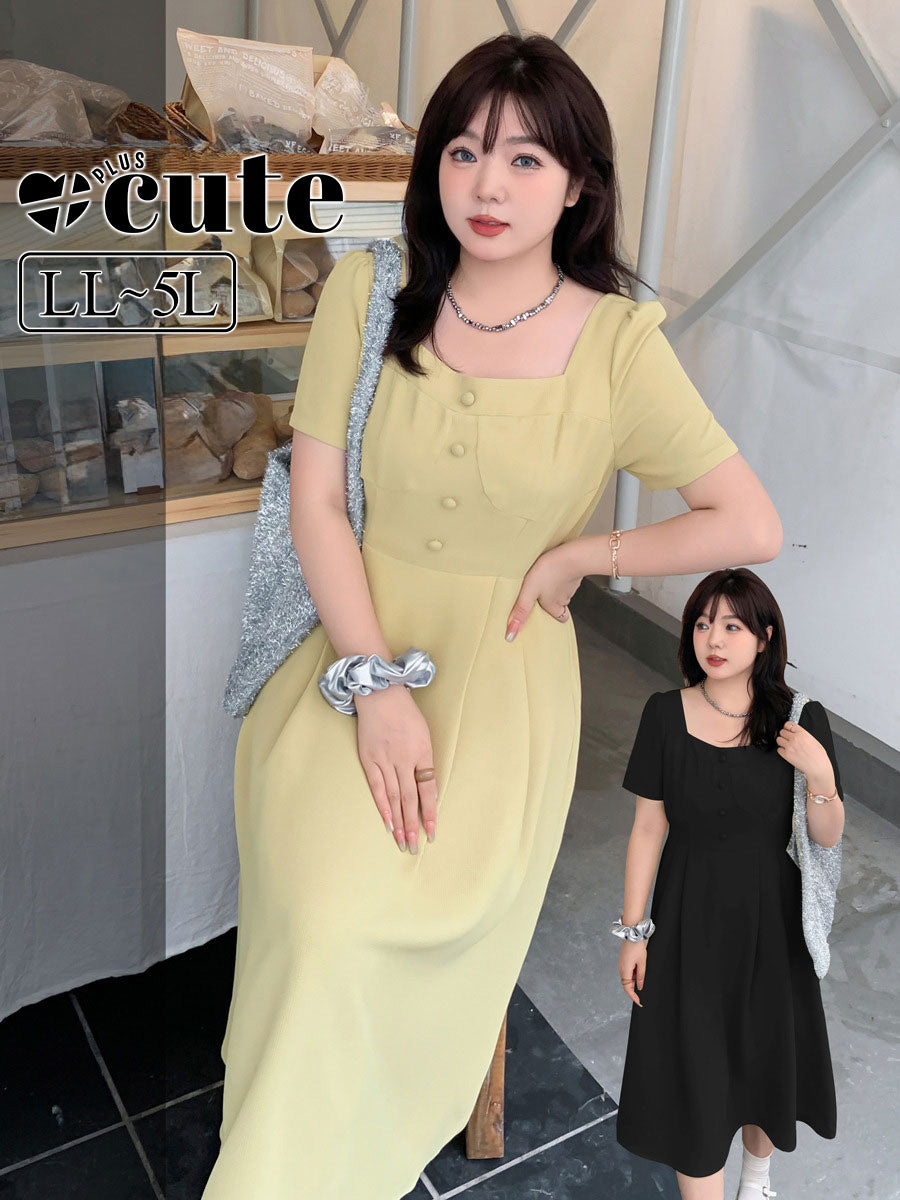 大きいサイズ レディース スクエアネックフレンチレトロワンピース LL 3L 4L 5L