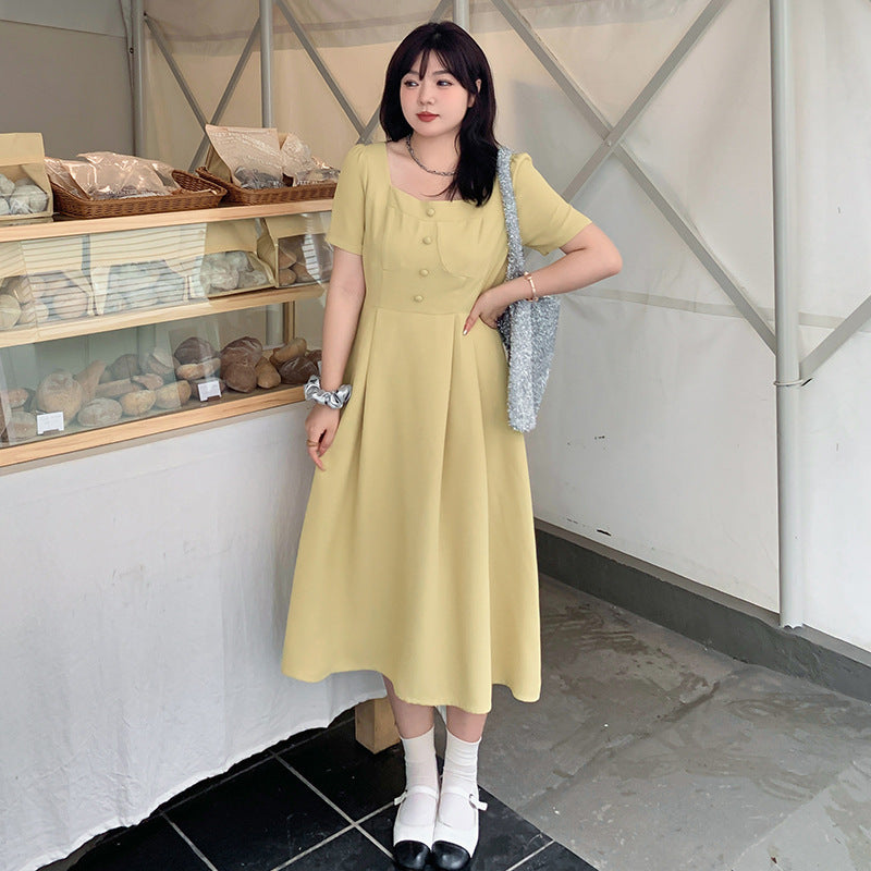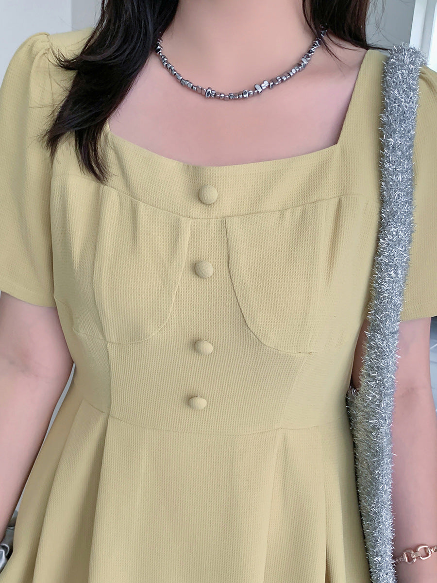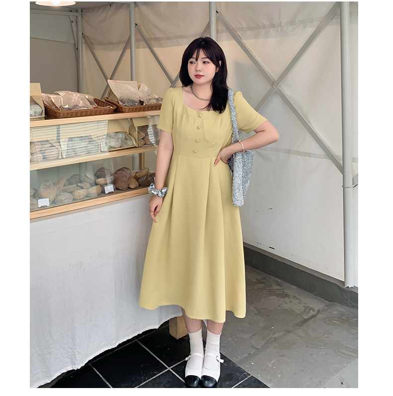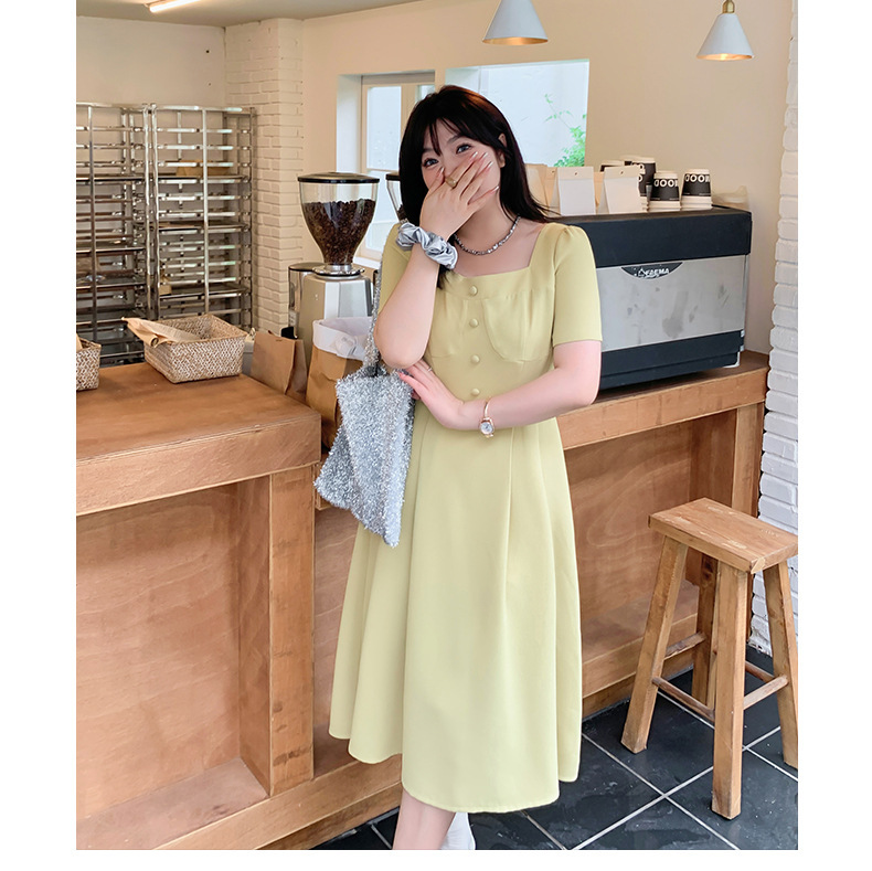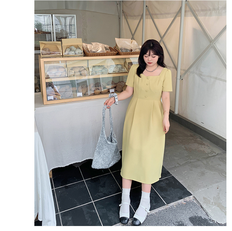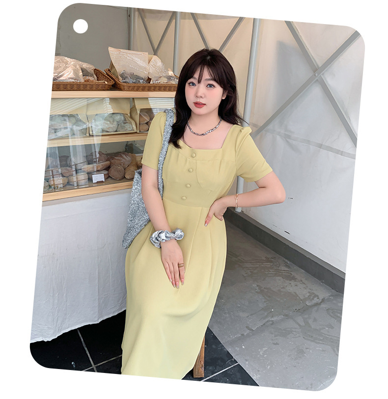 大きいサイズ レディース スクエアネックフレンチレトロワンピース LL 3L 4L 5L