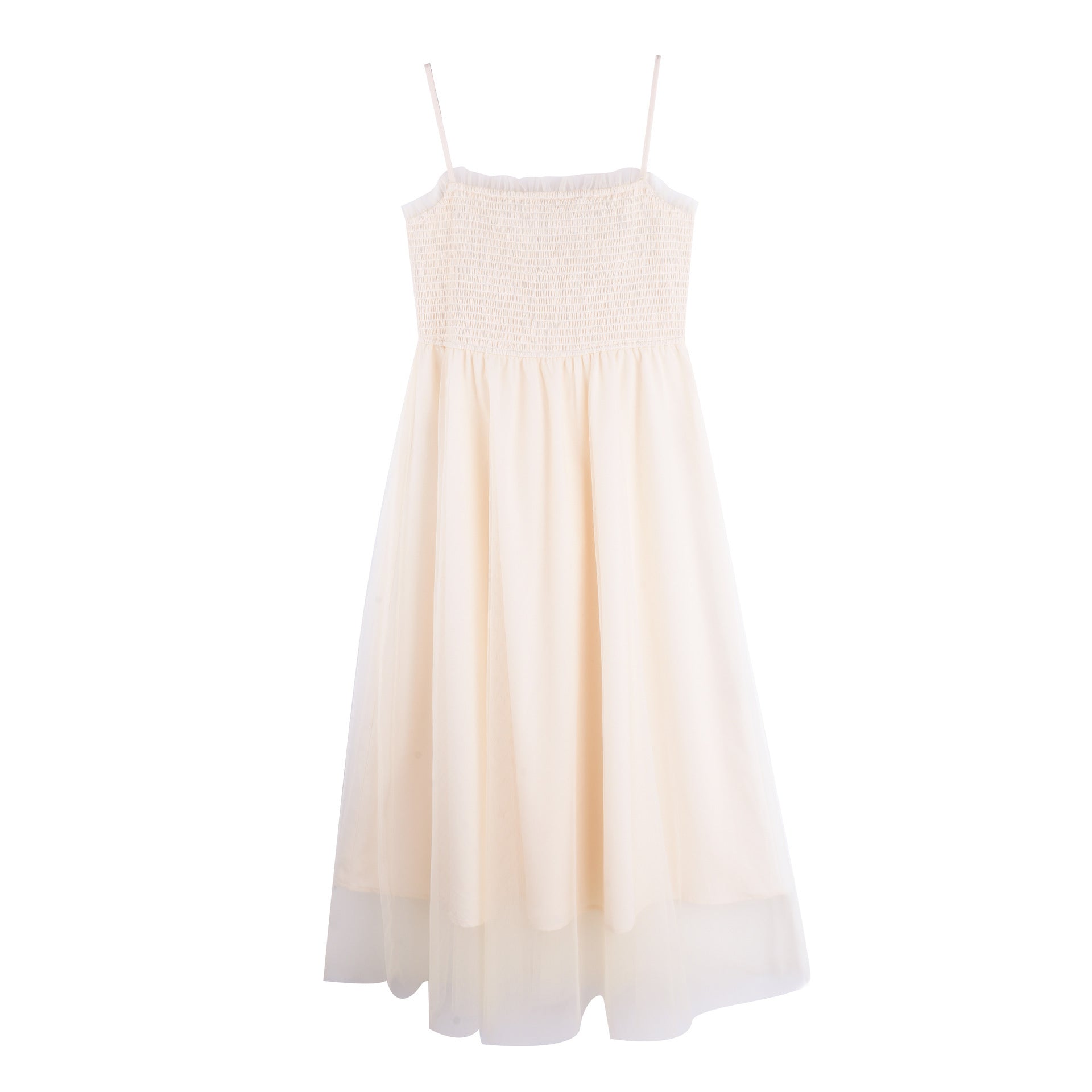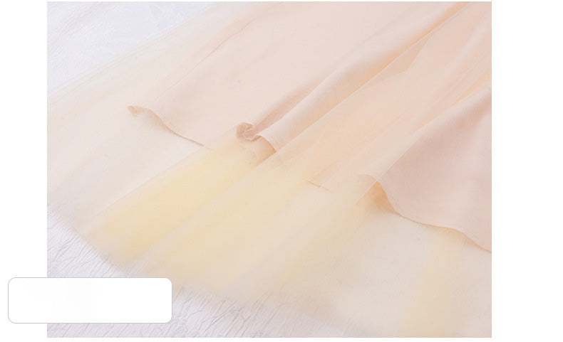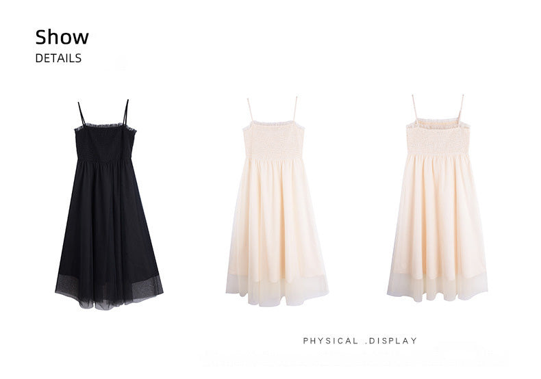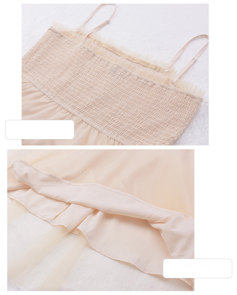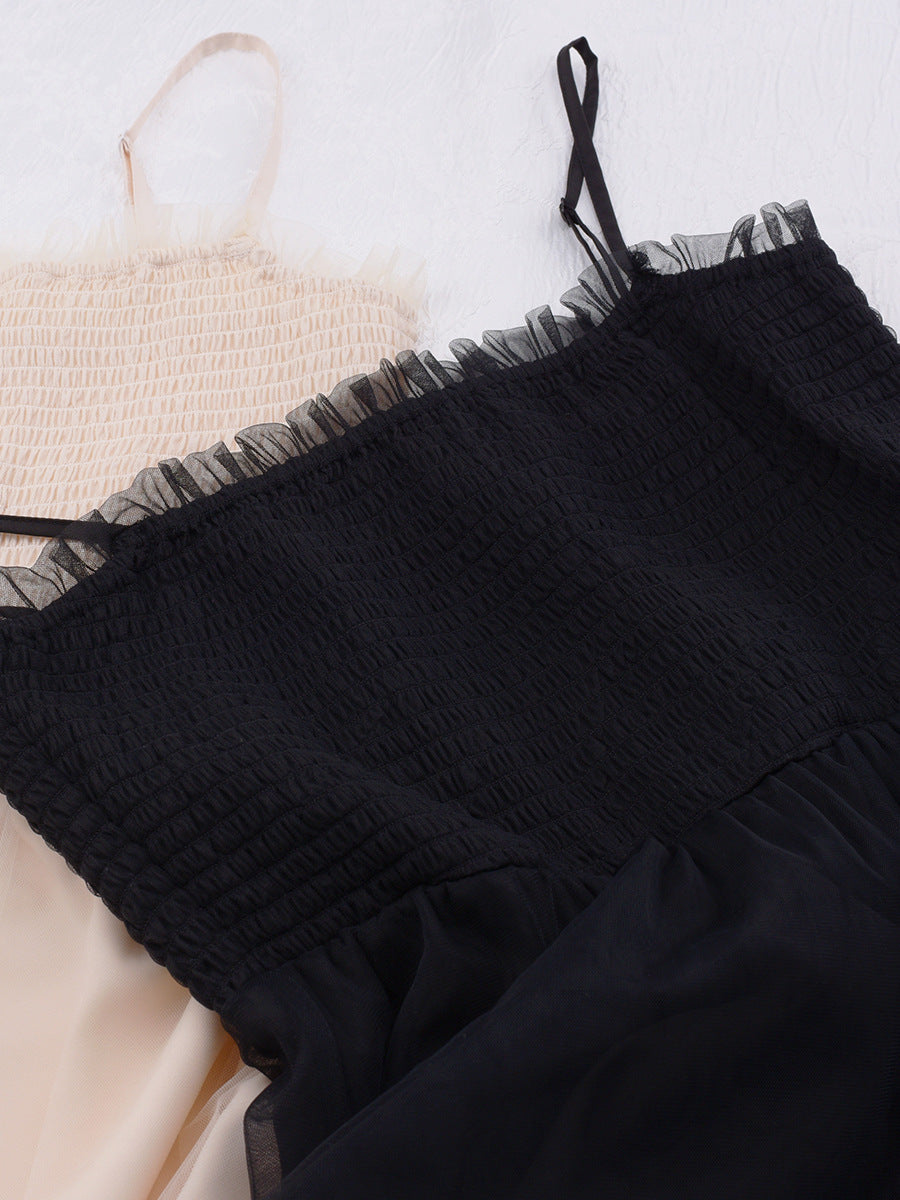 チュールフェアリーワンピースは、柔らかい手触りで、肩ストラップは調節可能!バストラインはゴム仕様なので、ホールドしてくれて快適です。 2枚重ねのメッシュ生地で裏地も付いているので、一枚で着ても、インナーとして着ても素敵です!合わせるトップスによってさまざまなシュチュエーションで活躍する一枚です。