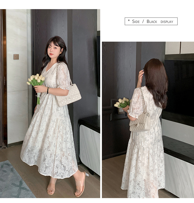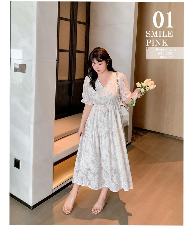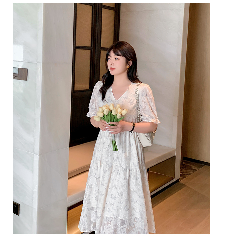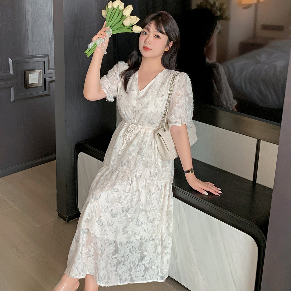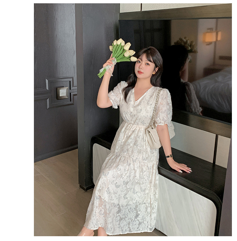 体型をカバーしてくれるVネックのロングバタフライプリントワンピース は、ウエストを調節できるゆったりとしたスタイルです。生地は今年注目のカットフラワーベースの生地を使用しております。生地の表面は立体的で滑らかで柔らかいので、夏場でも快適にご着用いただけます☆裏地付きのワンピースなので一枚でも安心。ビーズボタンがついたパフスリーブがガーリーな雰囲気を演出します☆妖精のようなスタイルを楽しみたい方にピッタリな一着です♪