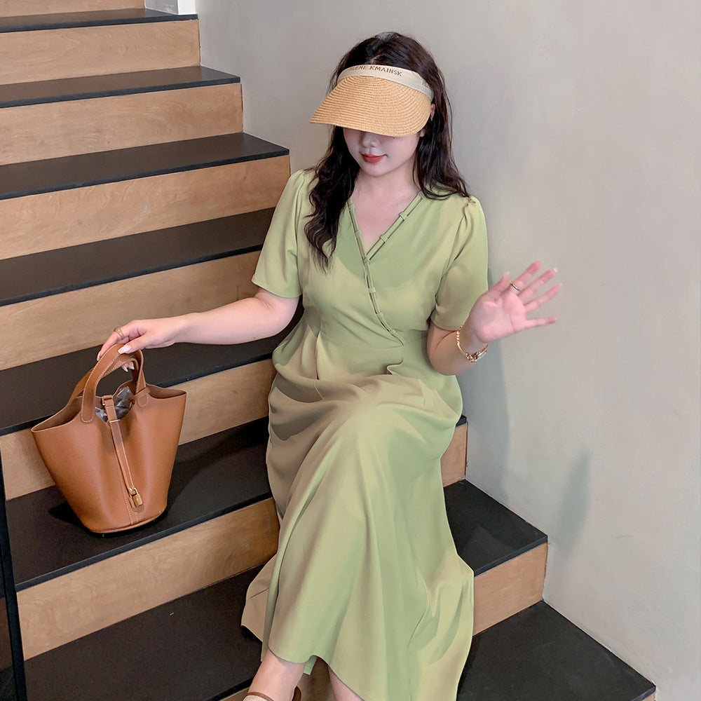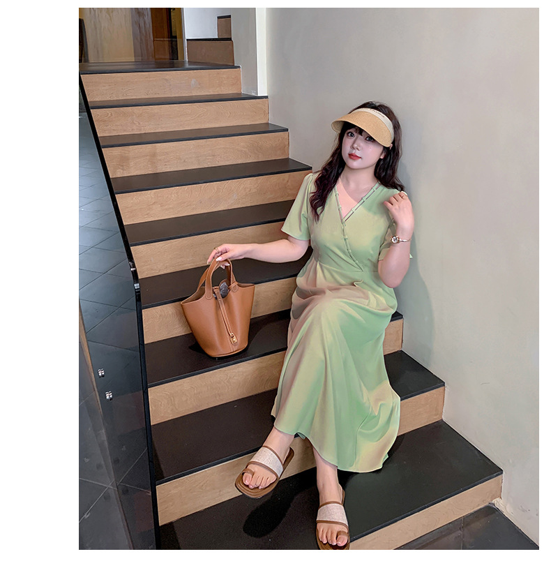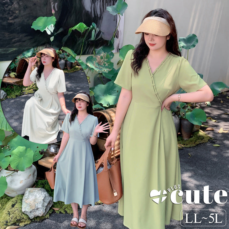 大きいサイズ レディース シンプル無地Vネックワンピース LL 3L 4L 5L
