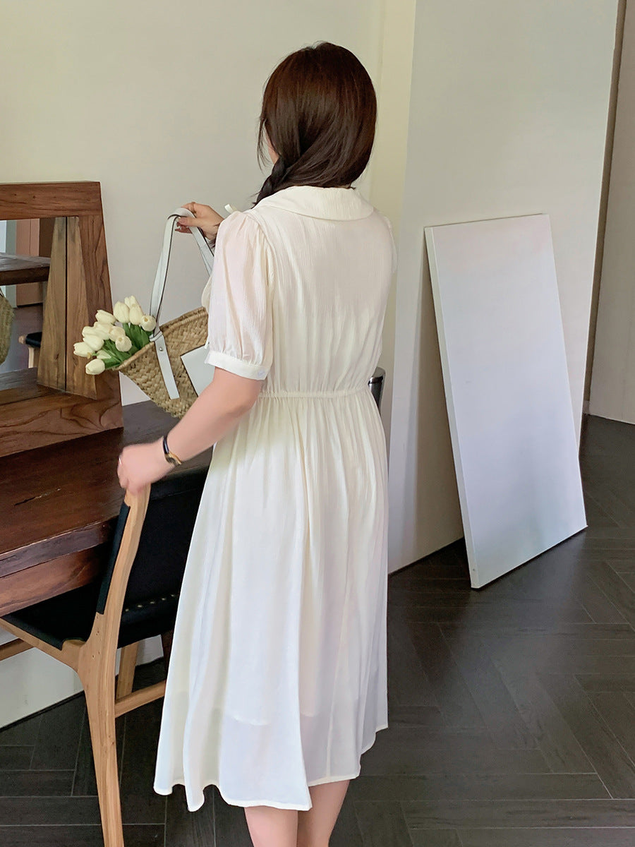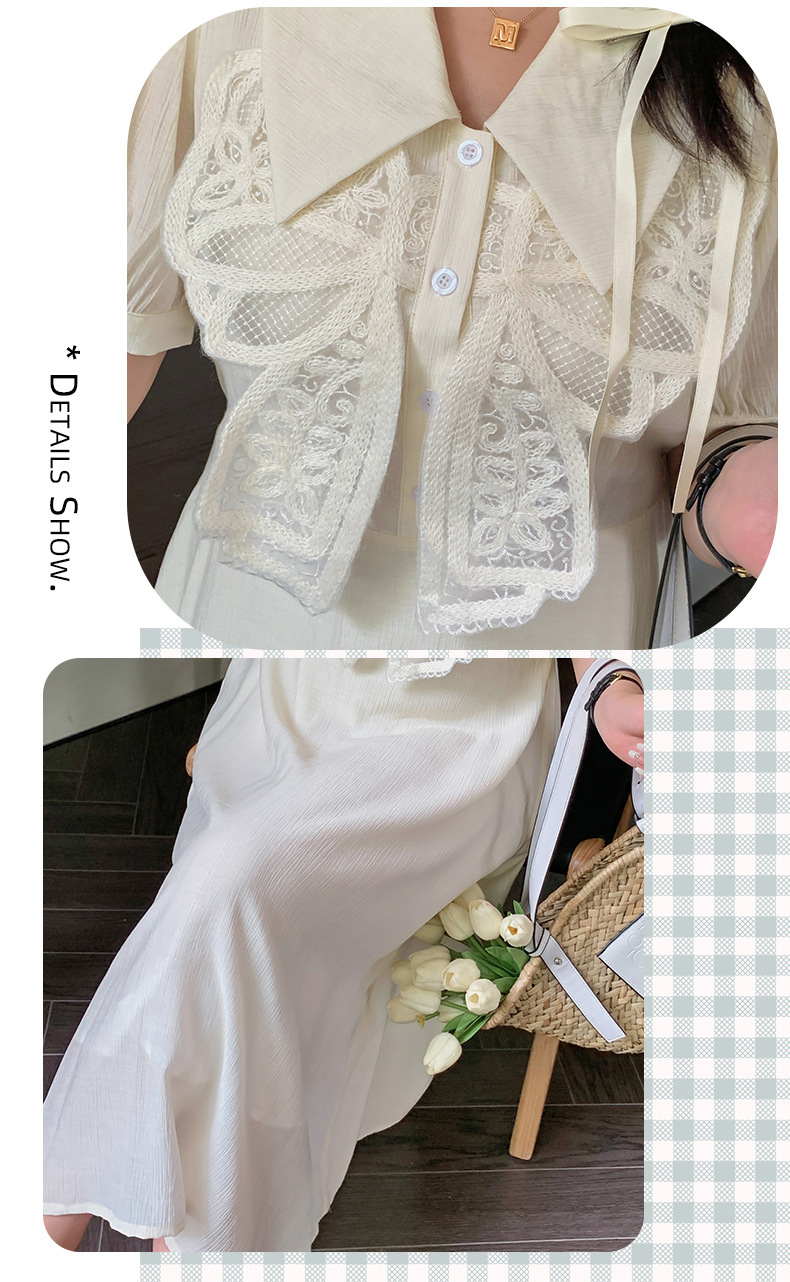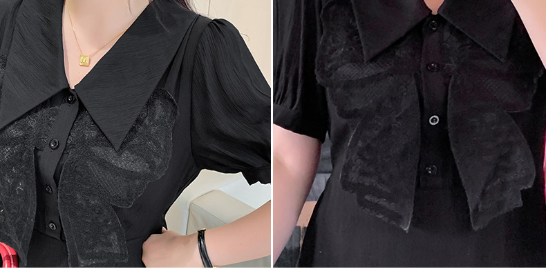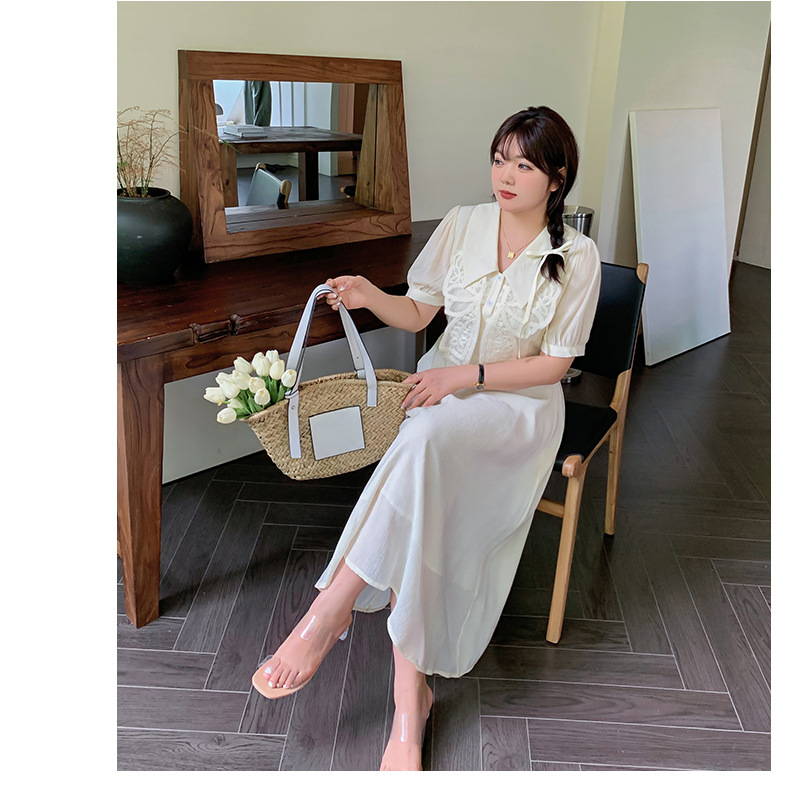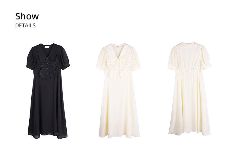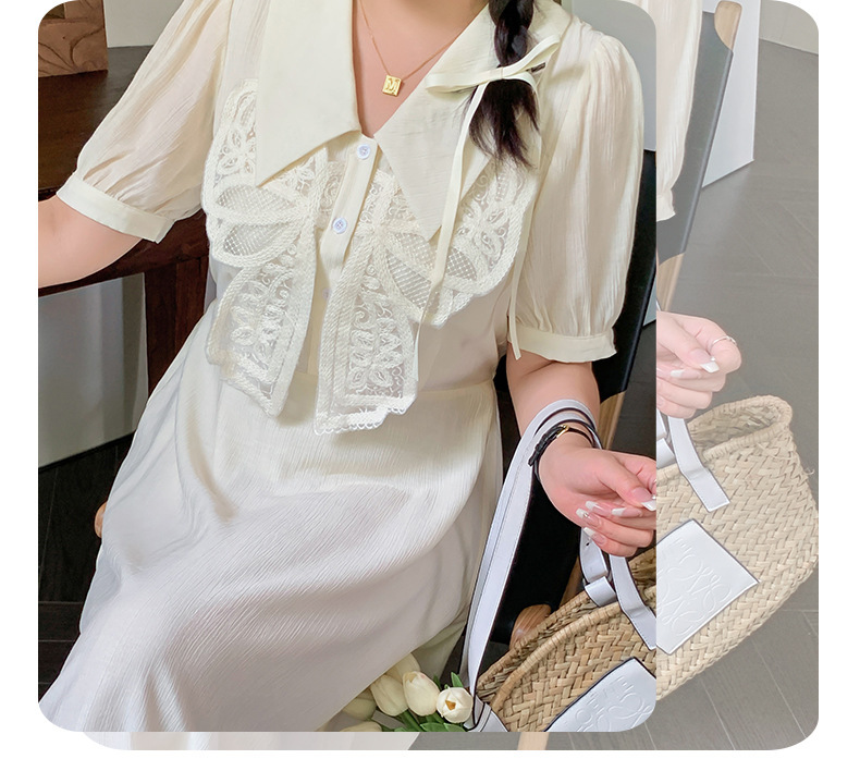 テンセル生地で作られているため軽くて柔らかく、肌に優しい接触冷感の心地よさをお楽しみいただけます。シャツの襟はワイドで深く、大きなリボンの刺繍が甘くてキュートな印象を与えます。パフスリーブ・ボタン付きの袖口・バックウエストのゴムデザインがレディライクなスタイルです♪シルエットが美しく、気分上がるワンピースを是非お試しください♪