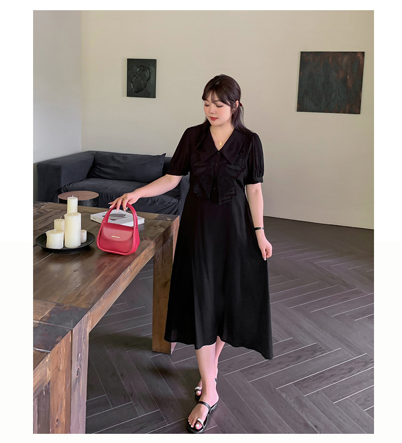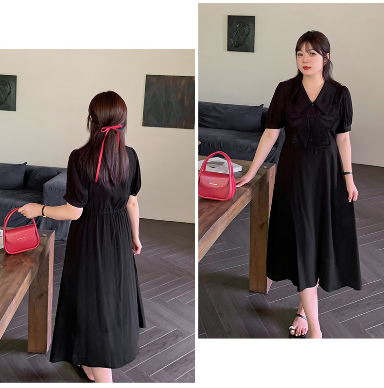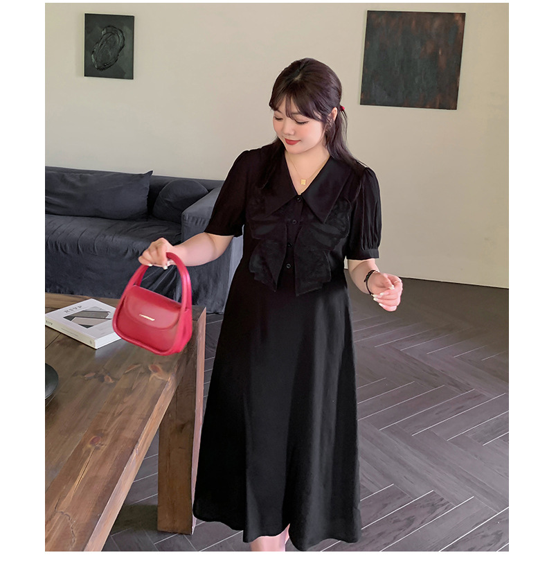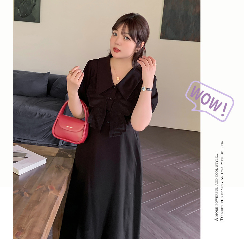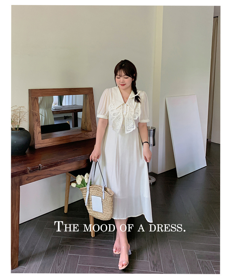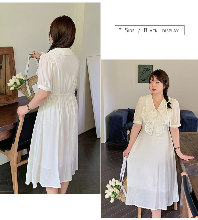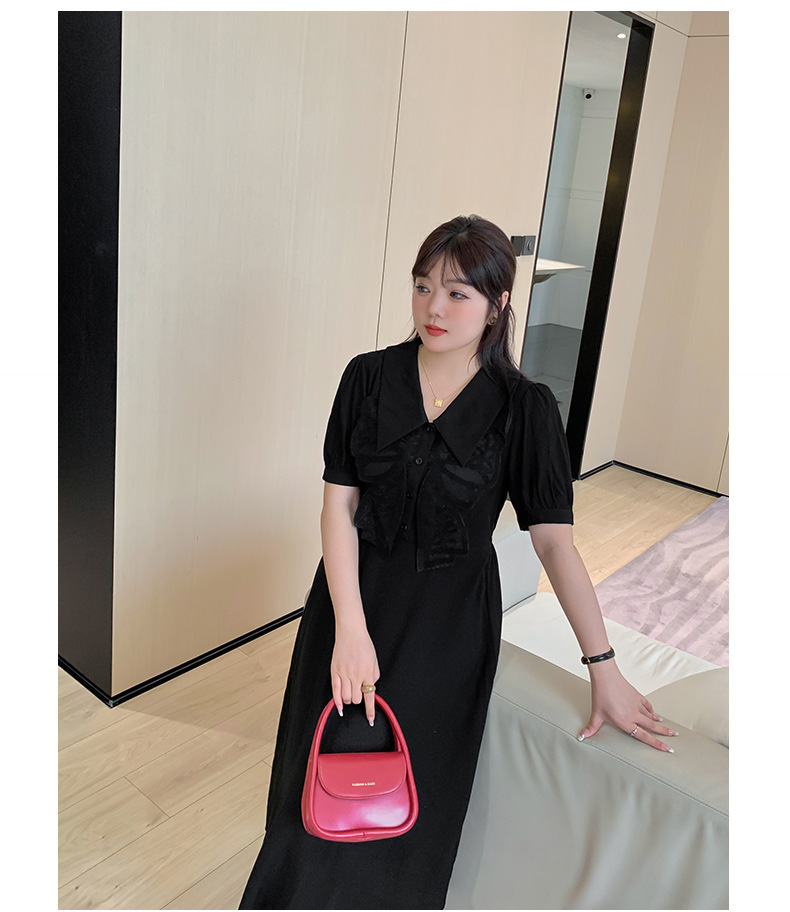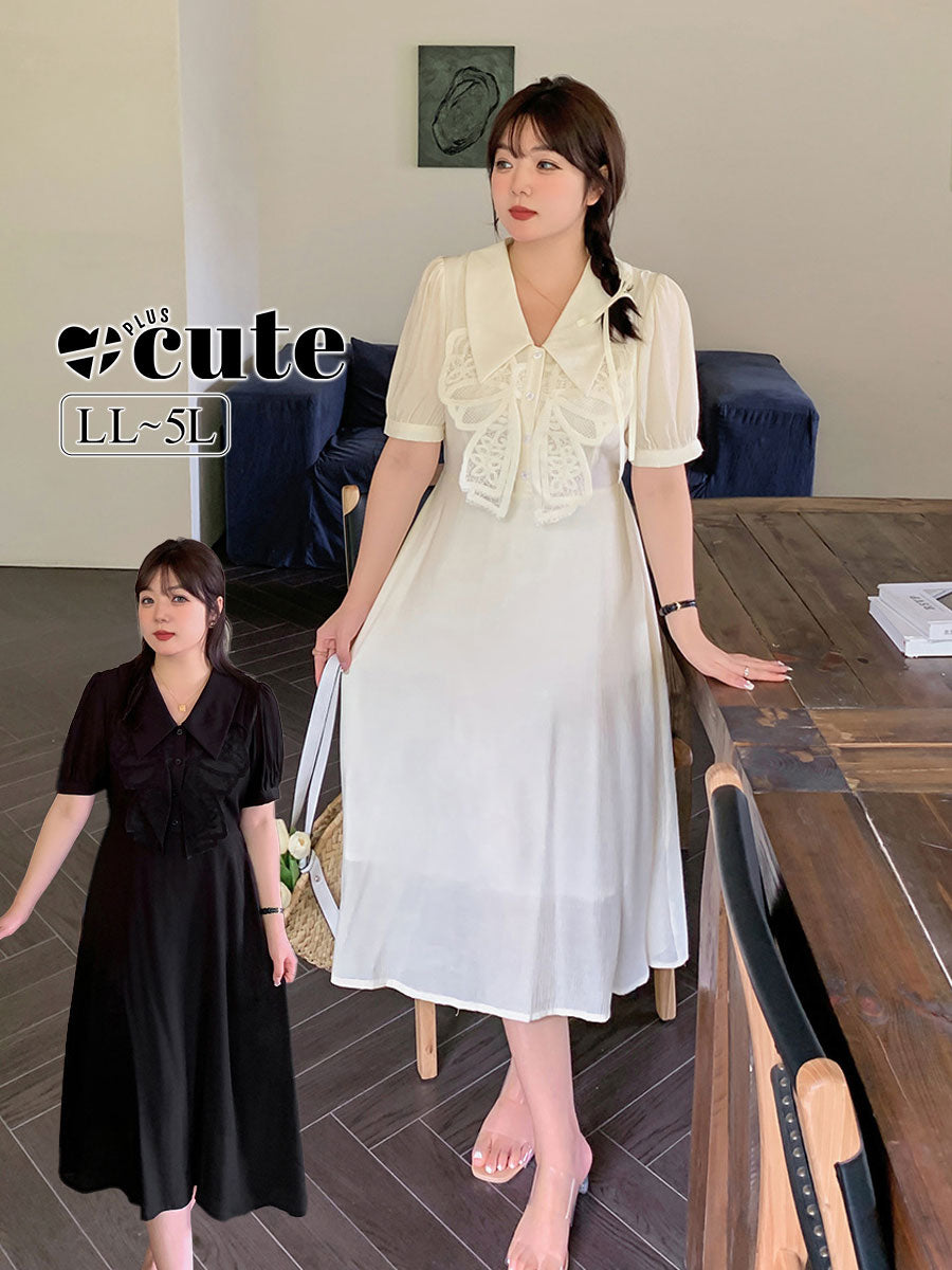 大きいサイズ レディース ワイドカラーフロントリボンワンピース LL 3L 4L 5L