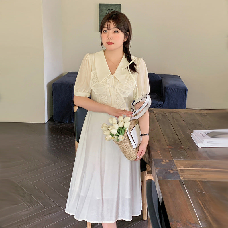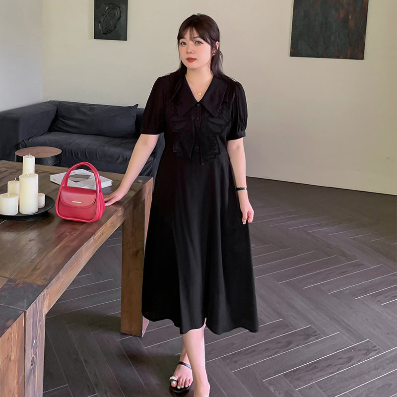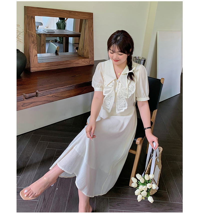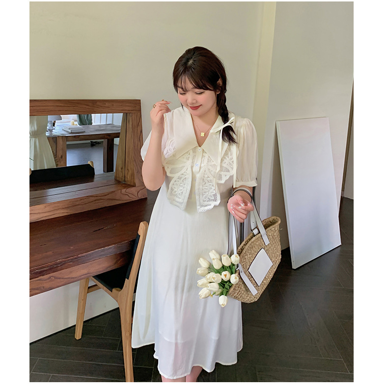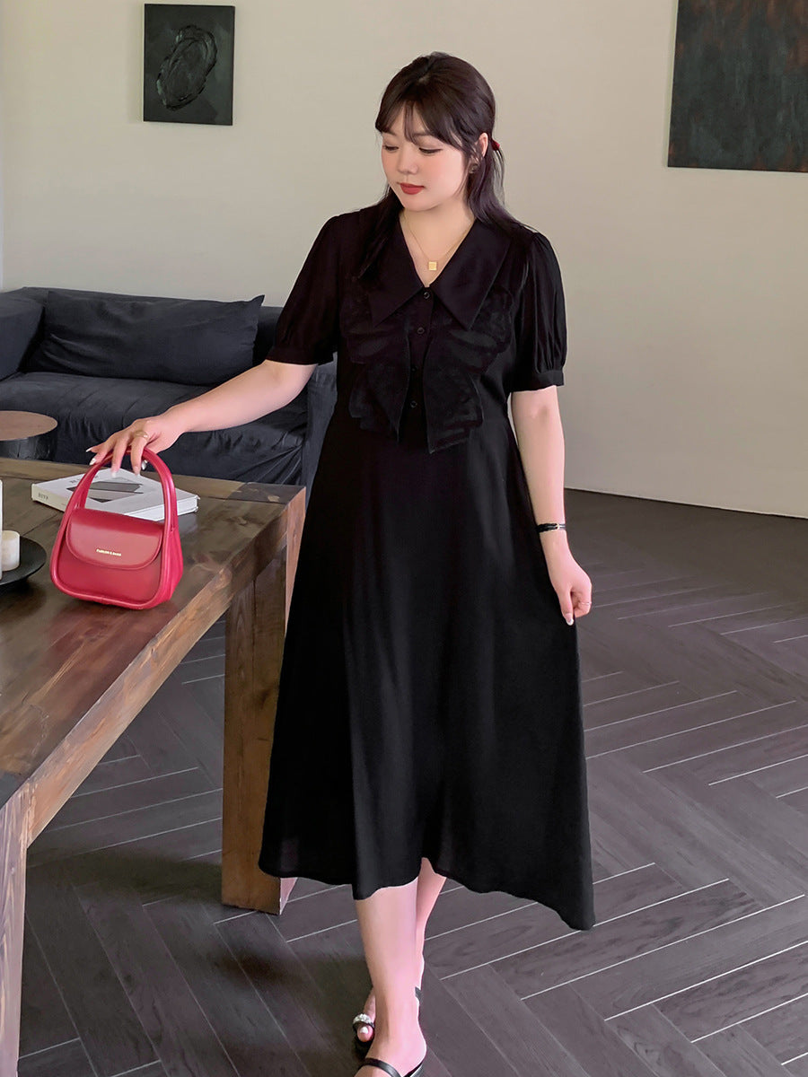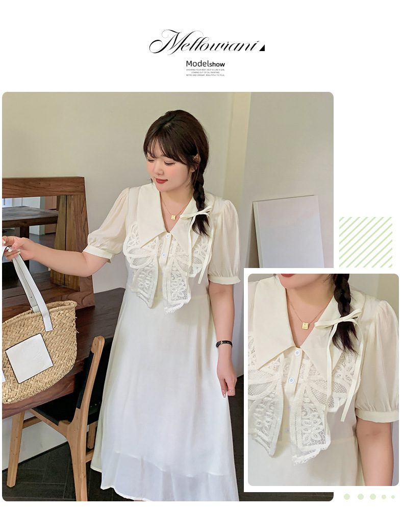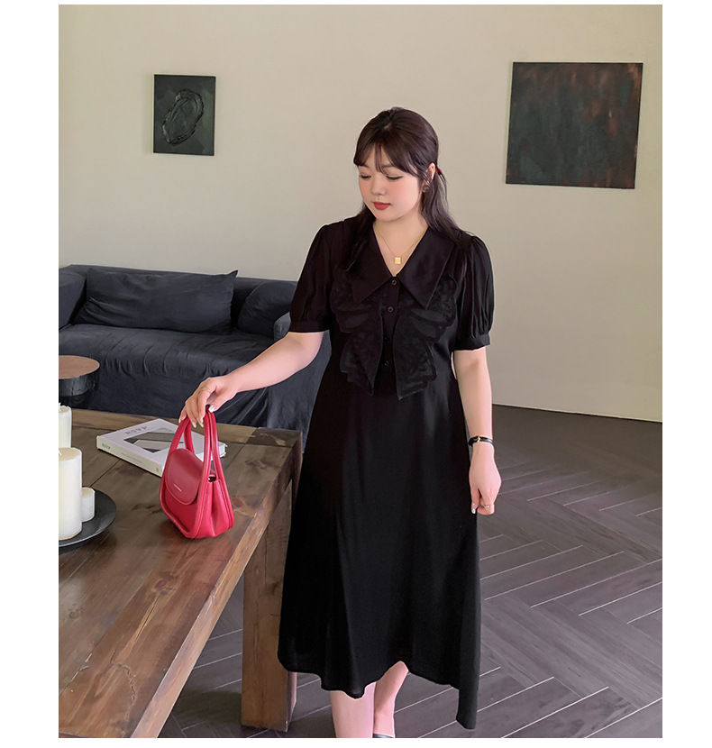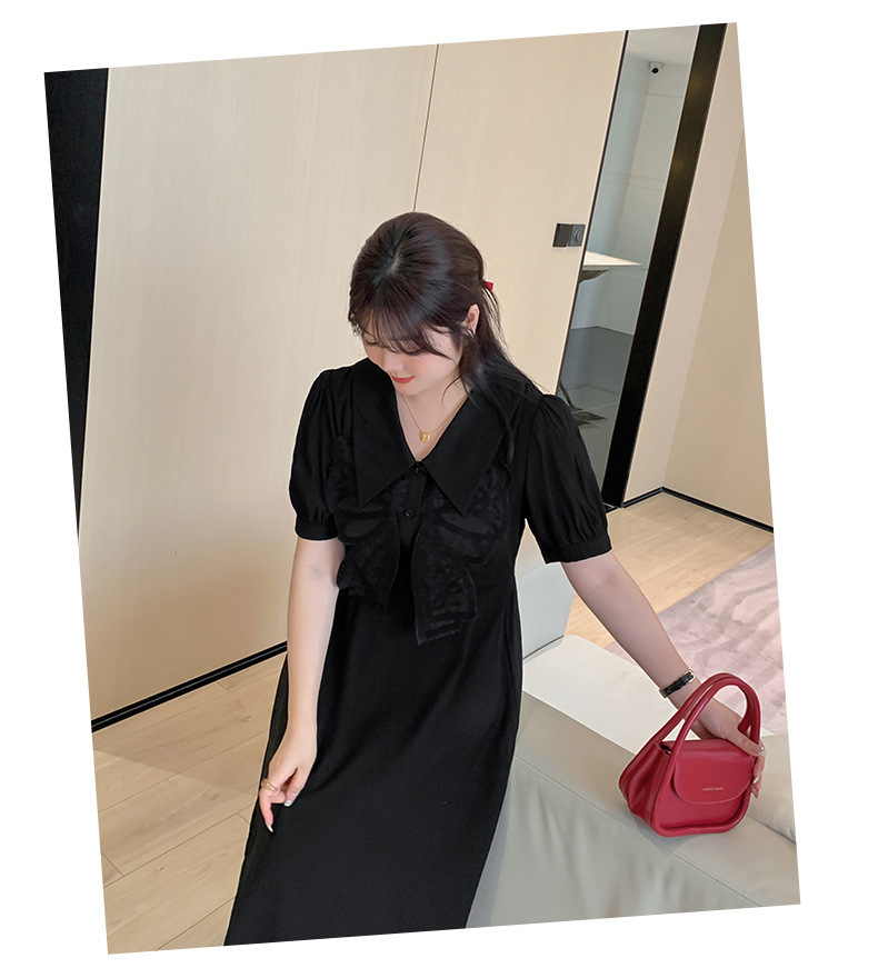 大きいサイズ レディース ワイドカラーフロントリボンワンピース LL 3L 4L 5L