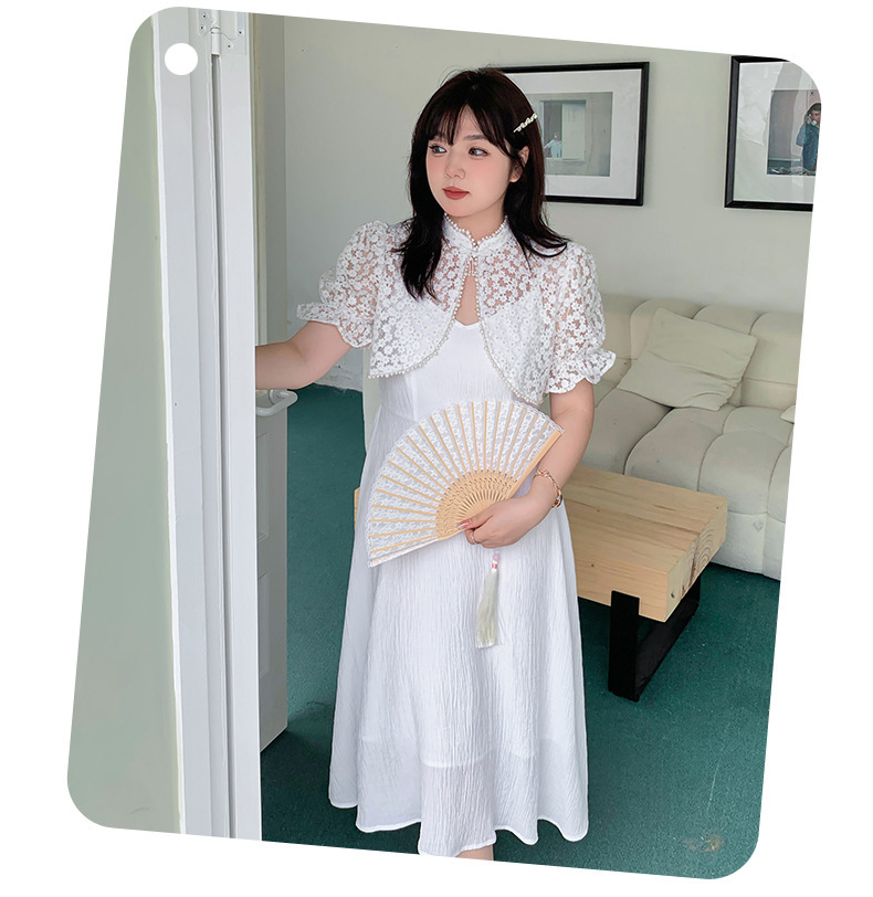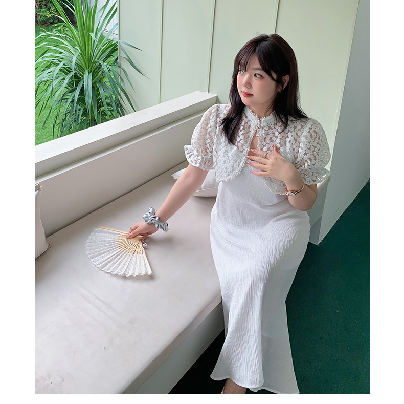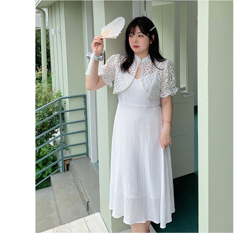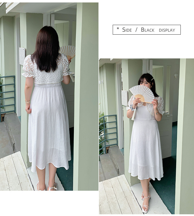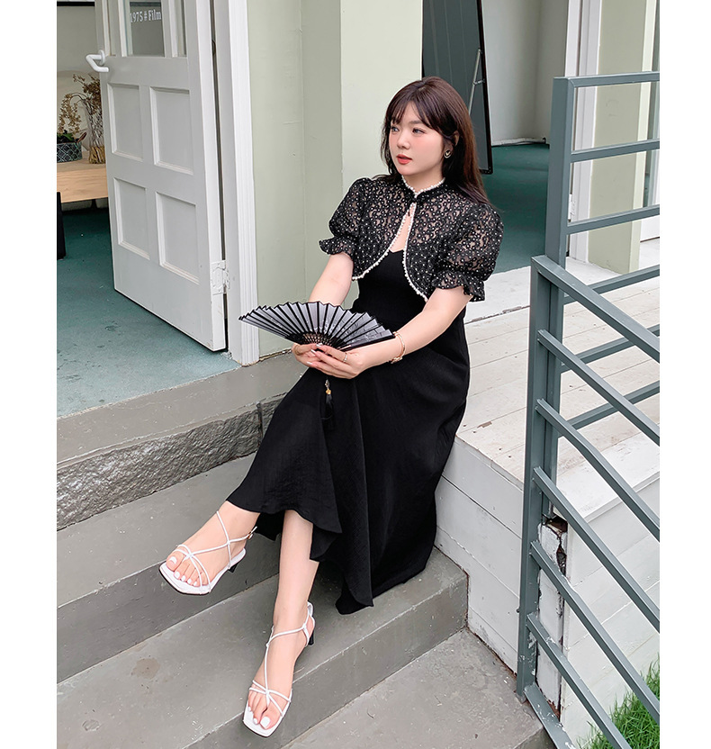 エレガントな花柄レーストップス+キャミソールワンピースのツーピースセットは、お出かけやパーティードレスとして最適です☆レース生地の柄は柔らかく肌に優しい質感で伸縮性があります。トップスにはタッセルバックルとパールウェビングが施されており、とても華やかで綺麗な印象を与えます。キャミワンピの肩紐は調節可能で、バックウエストはゴム仕様のためそれぞれに合った着用感を提供します。特別な日にピッタリのアイテムを是非お試しください♪