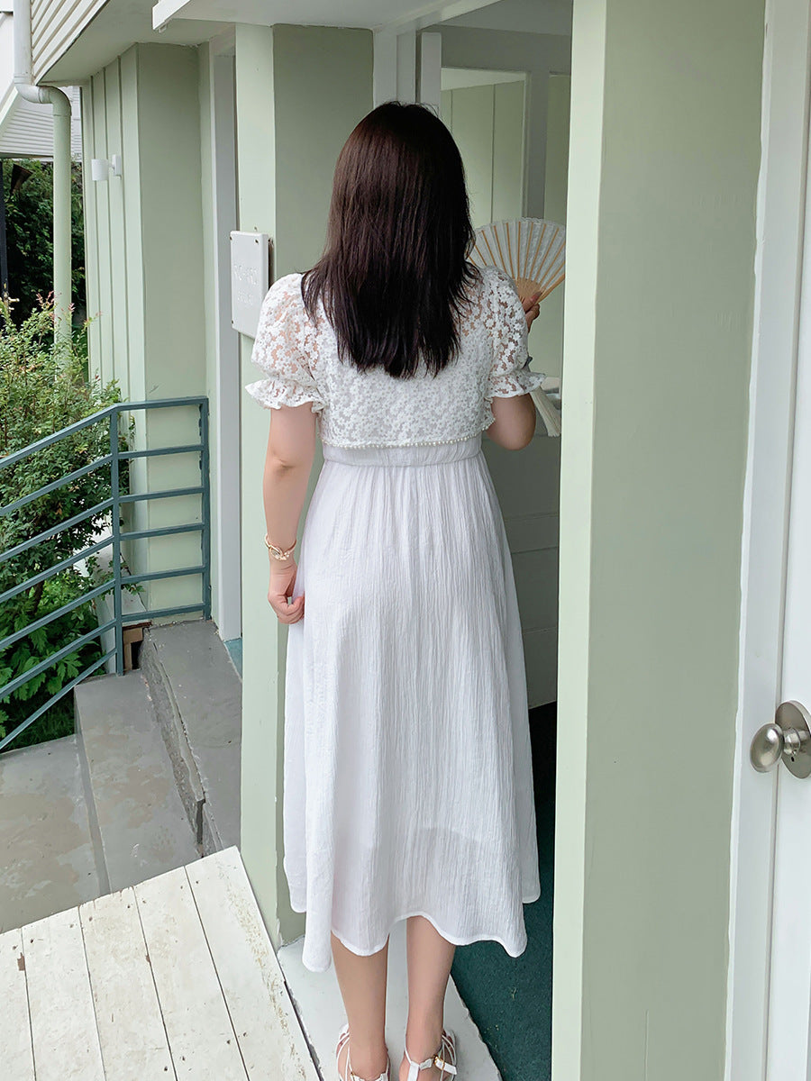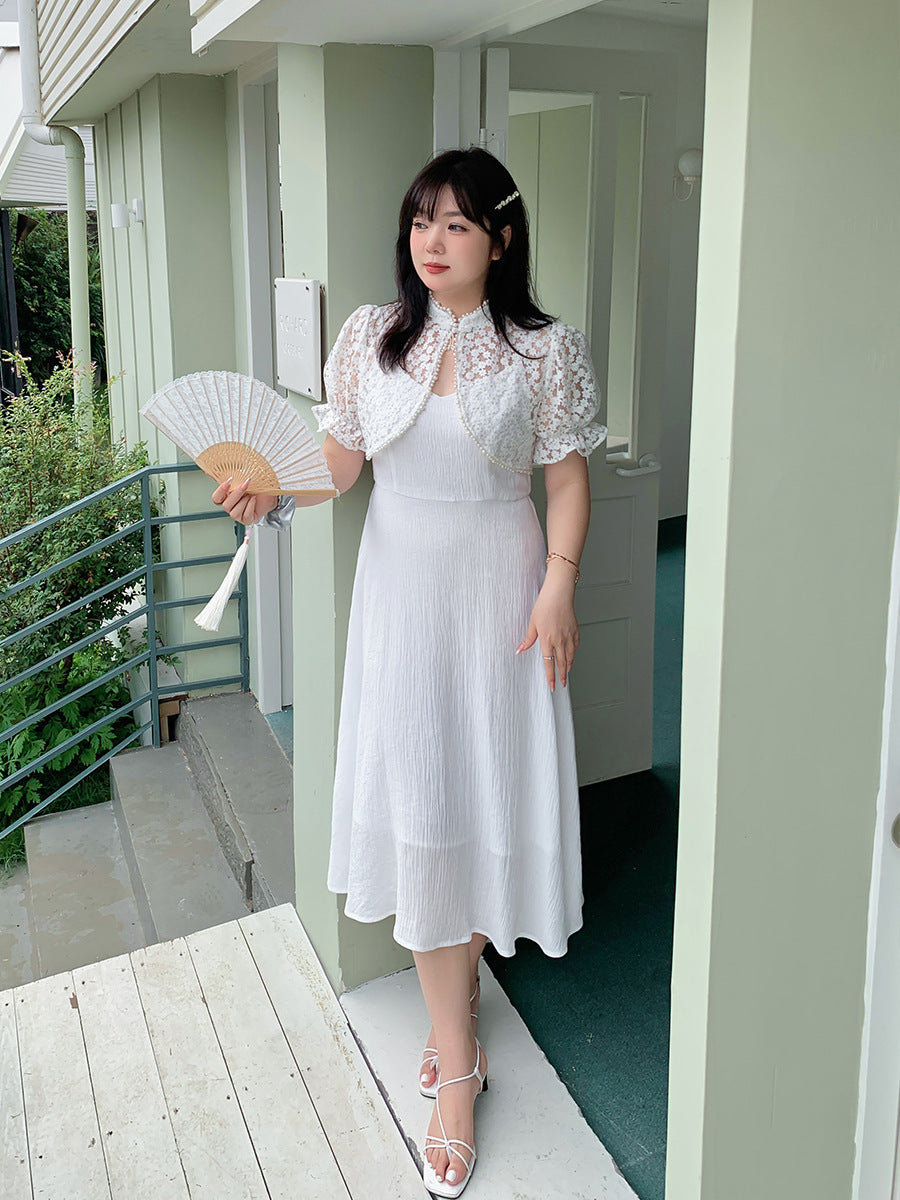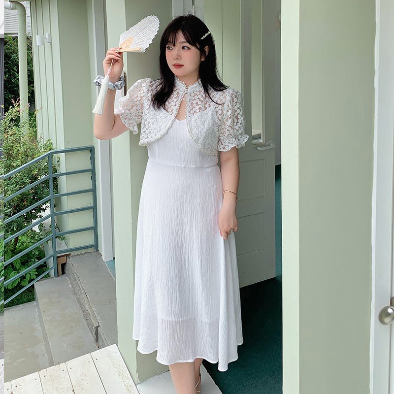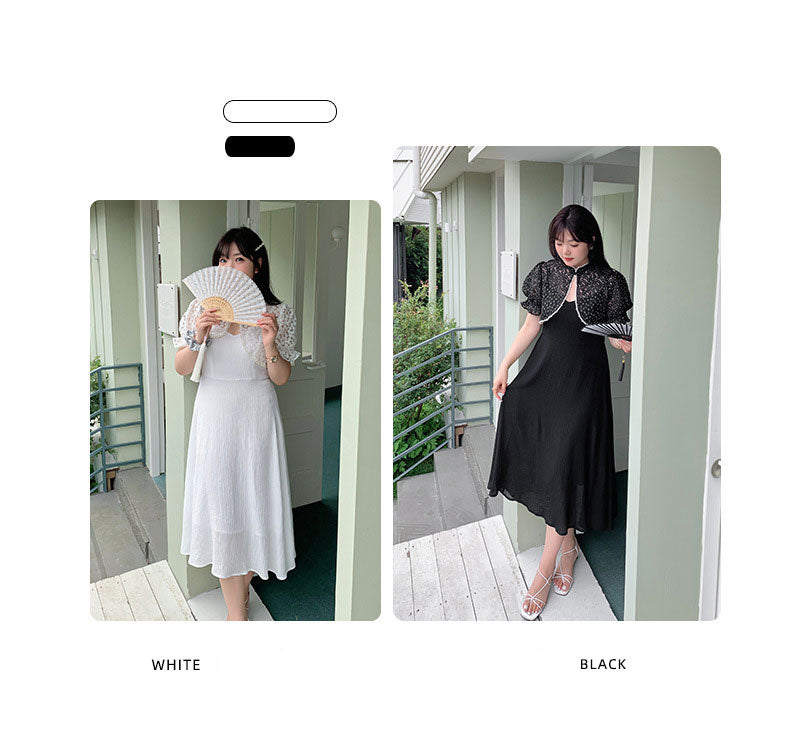エレガントな花柄レーストップス+キャミソールワンピースのツーピースセットは、お出かけやパーティードレスとして最適です☆レース生地の柄は柔らかく肌に優しい質感で伸縮性があります。トップスにはタッセルバックルとパールウェビングが施されており、とても華やかで綺麗な印象を与えます。キャミワンピの肩紐は調節可能で、バックウエストはゴム仕様のためそれぞれに合った着用感を提供します。特別な日にピッタリのアイテムを是非お試しください♪
