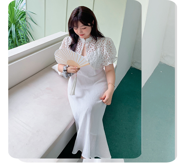 大きいサイズ レディース 花柄パールレーストップス+キャミソールワンピース2点セット LL 3L 4L 5L