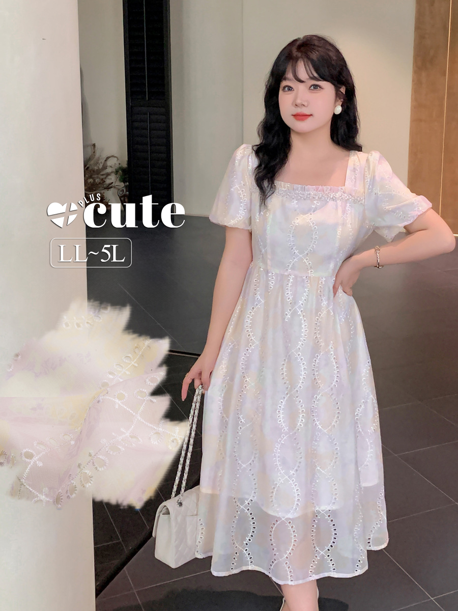 大きいサイズ レディース 花柄刺繍パールデザインパステルカラーワンピース LL 3L 4L 5L