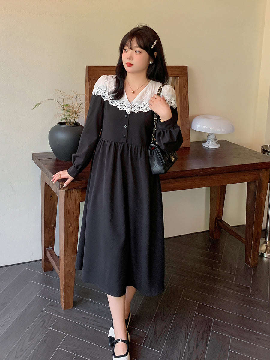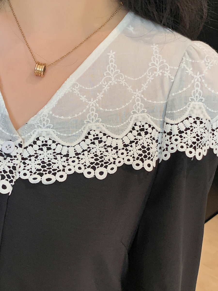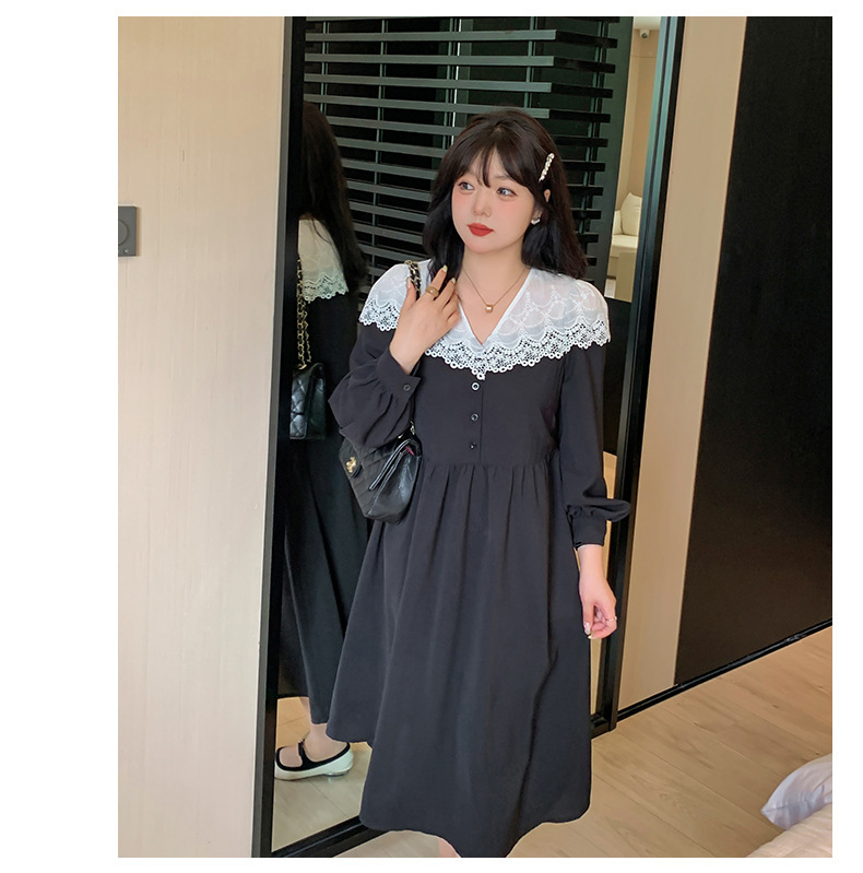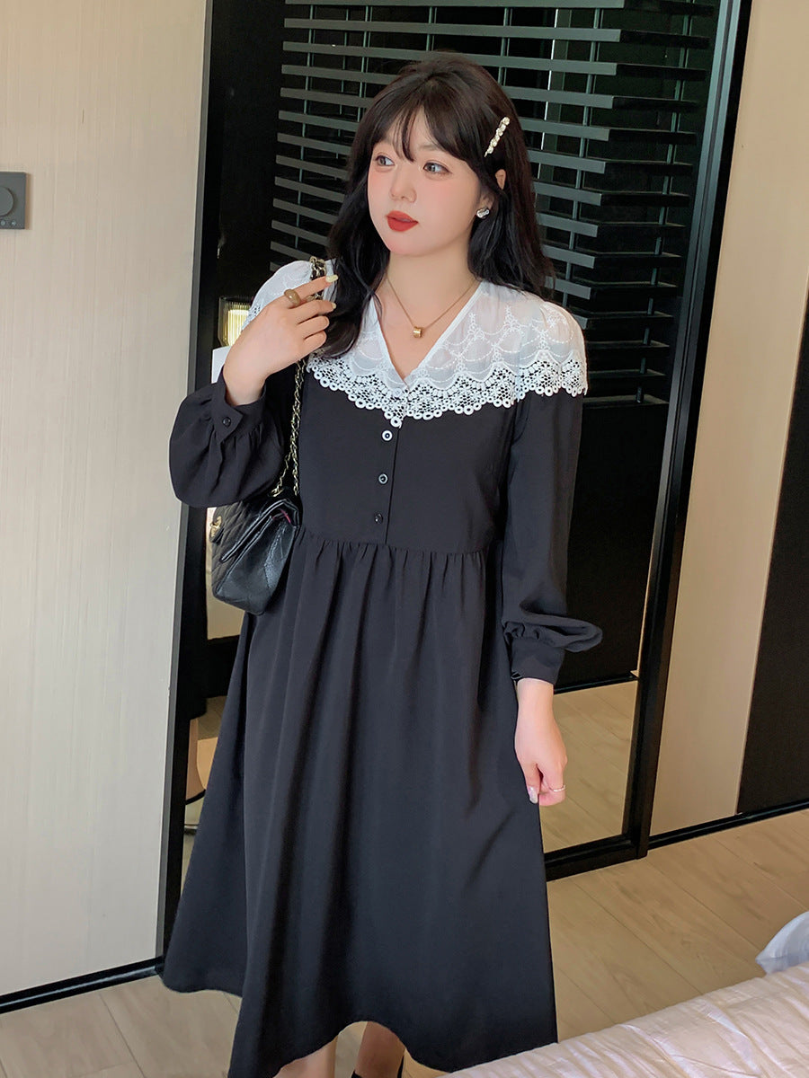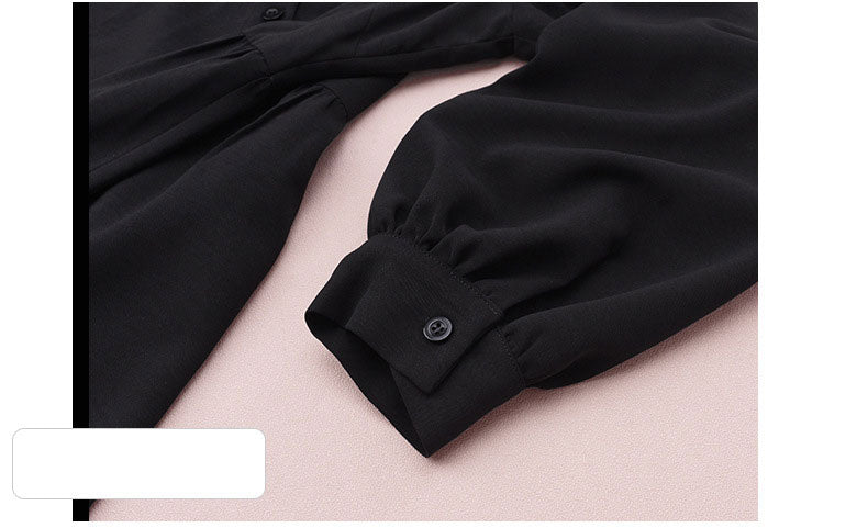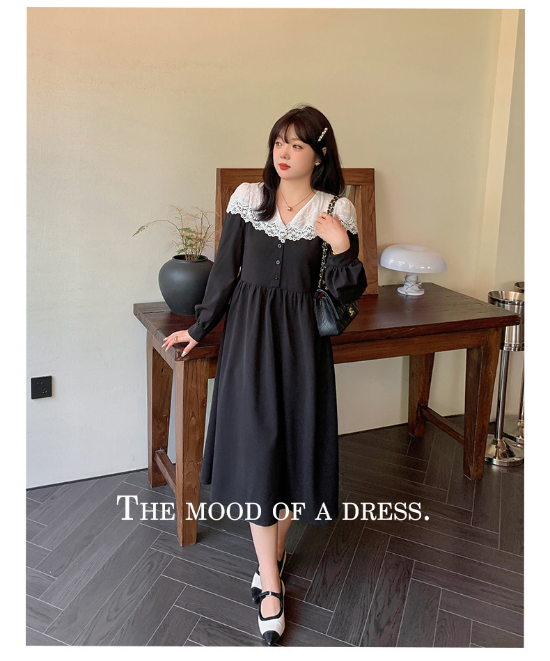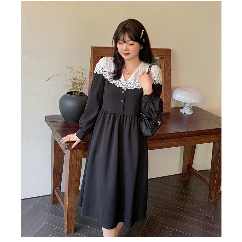 黒と白のコントラストのあるカラーが魅力的なクラシカルワンピースは、レース生地と通気性のある無地の生地で作られており、柔らかく滑らかなVネックデザインが施されています。フロントボタンは取り外し可能で、上半身は非常にスリムでスッキリとして見せることが出来ます。袖口サイドには隠しジッパー・ウエストには絞るためのボタンがあり、着痩せ効果を期待できます。シンプルかつエレガントな配色とデザインがシックで可愛いワンピースを