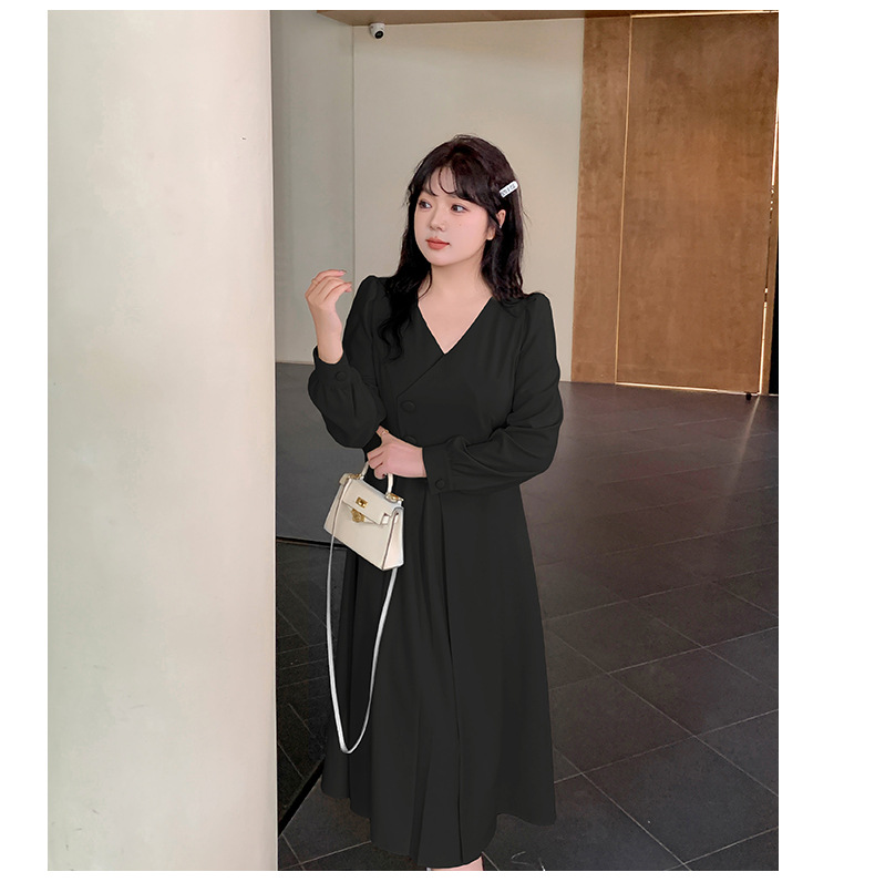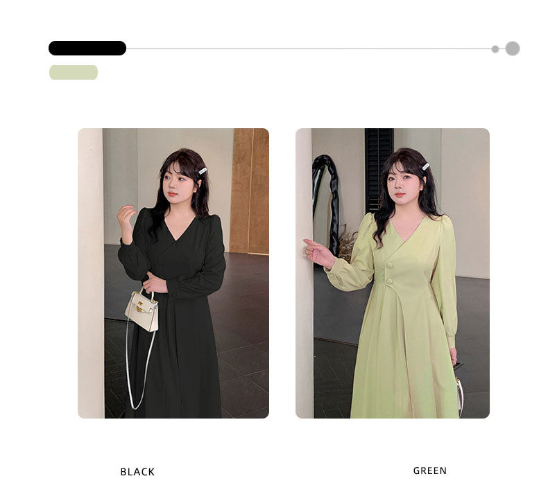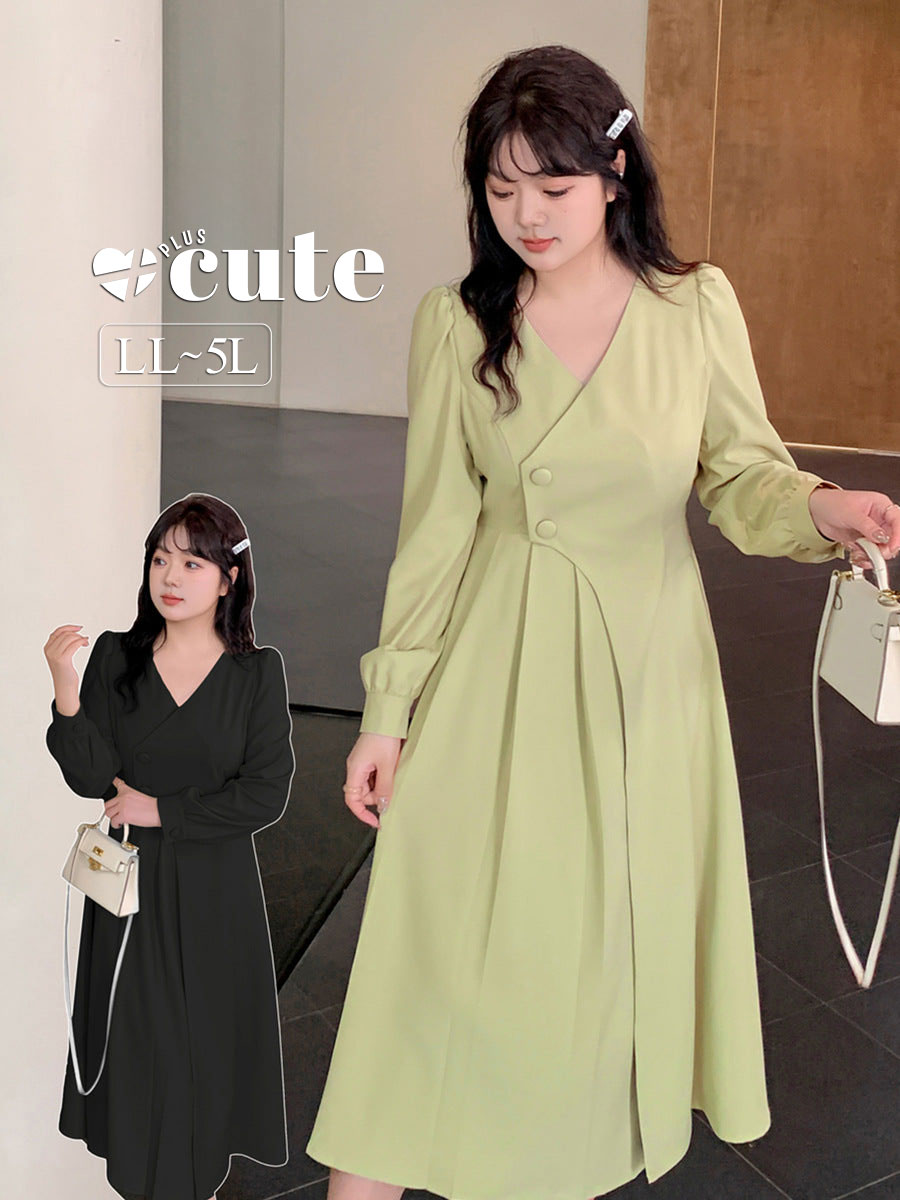 大きいサイズ レディース モダンアシンメトリーデザイン長袖ワンピース LL 3L 4L 5L