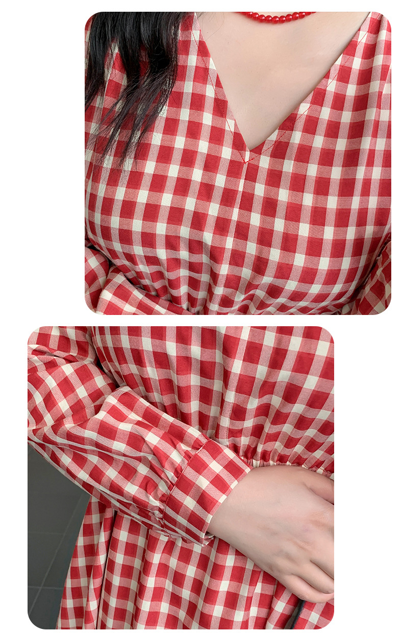 文学的でレトロなギンガムチェック柄ワンピースは、チェック生地の素朴な風合いで柔らかな質感を纏っています。首が詰まらないVネックタイプなので、お顔周りをスッキリ見せてくれます。ウエストゴムになっており引き締まったラインを演出でき、なおかつ着脱ラクラクなのも嬉しいポイント♪パフスリーブデザインは気になる二の腕をカバーします。
