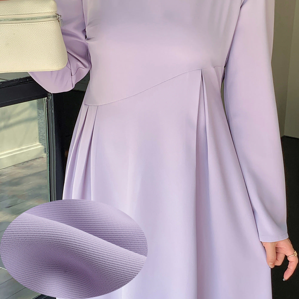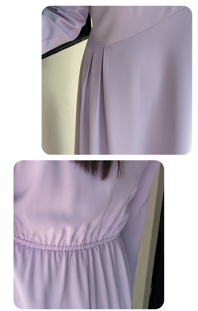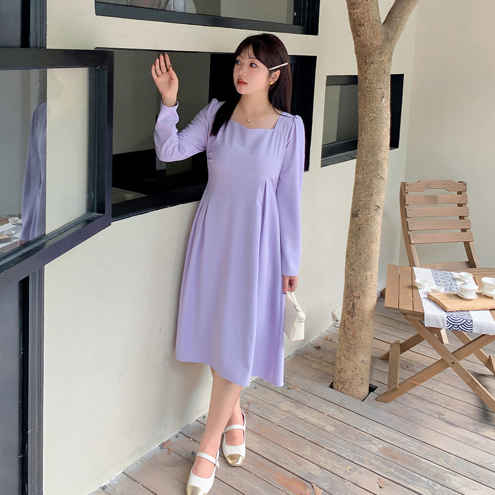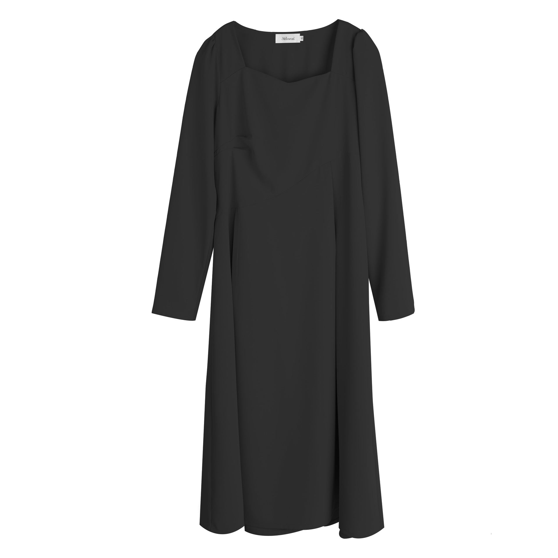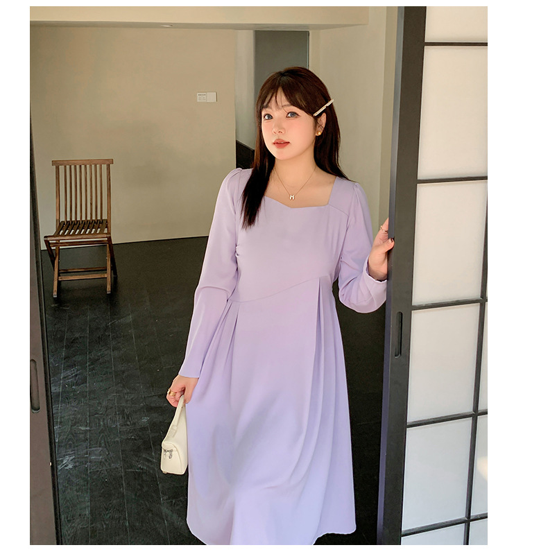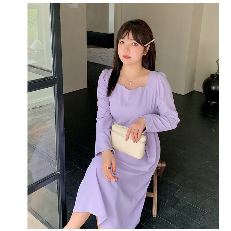 滑らかな生地の無地のスクエアネックロングワンピースは、プリーツとシームデザインが施されています。ウエストで切り替わる立体構造と伸縮性のあるAラインスカートは裾が滑らかで、レトロでエレガントな雰囲気を与えます。上品でシックなこのワンピースは、どんなアウターとも合うデザインです。