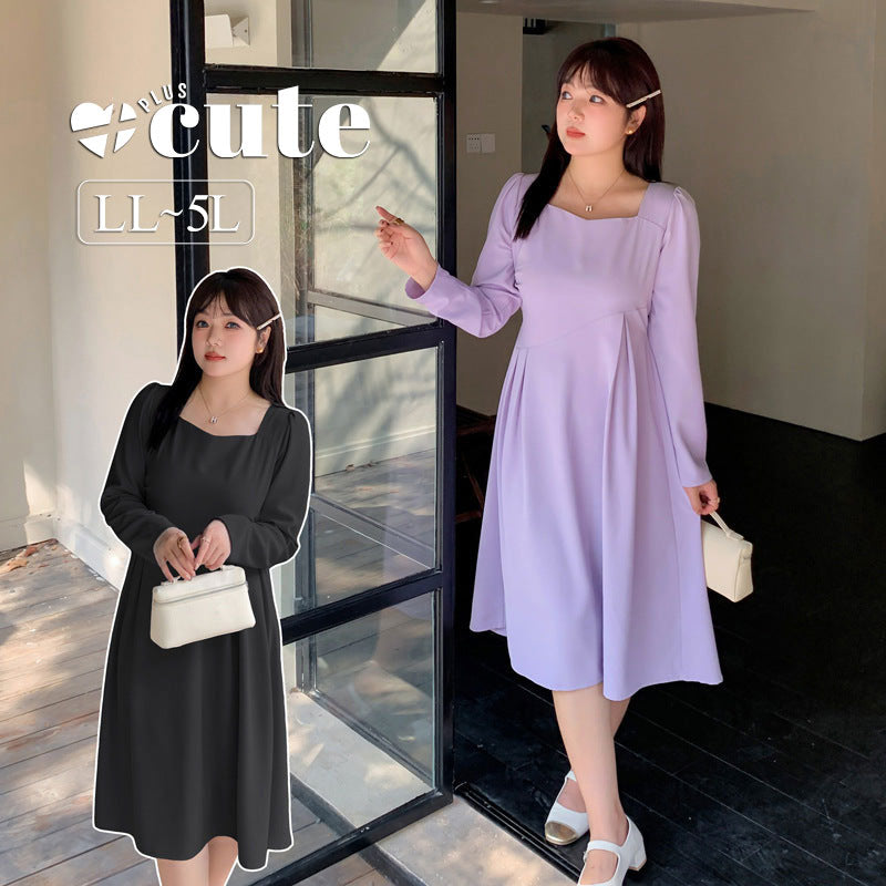 大きいサイズ レディース スクエアネックウエストゴムワンピース LL 3L 4L 5L