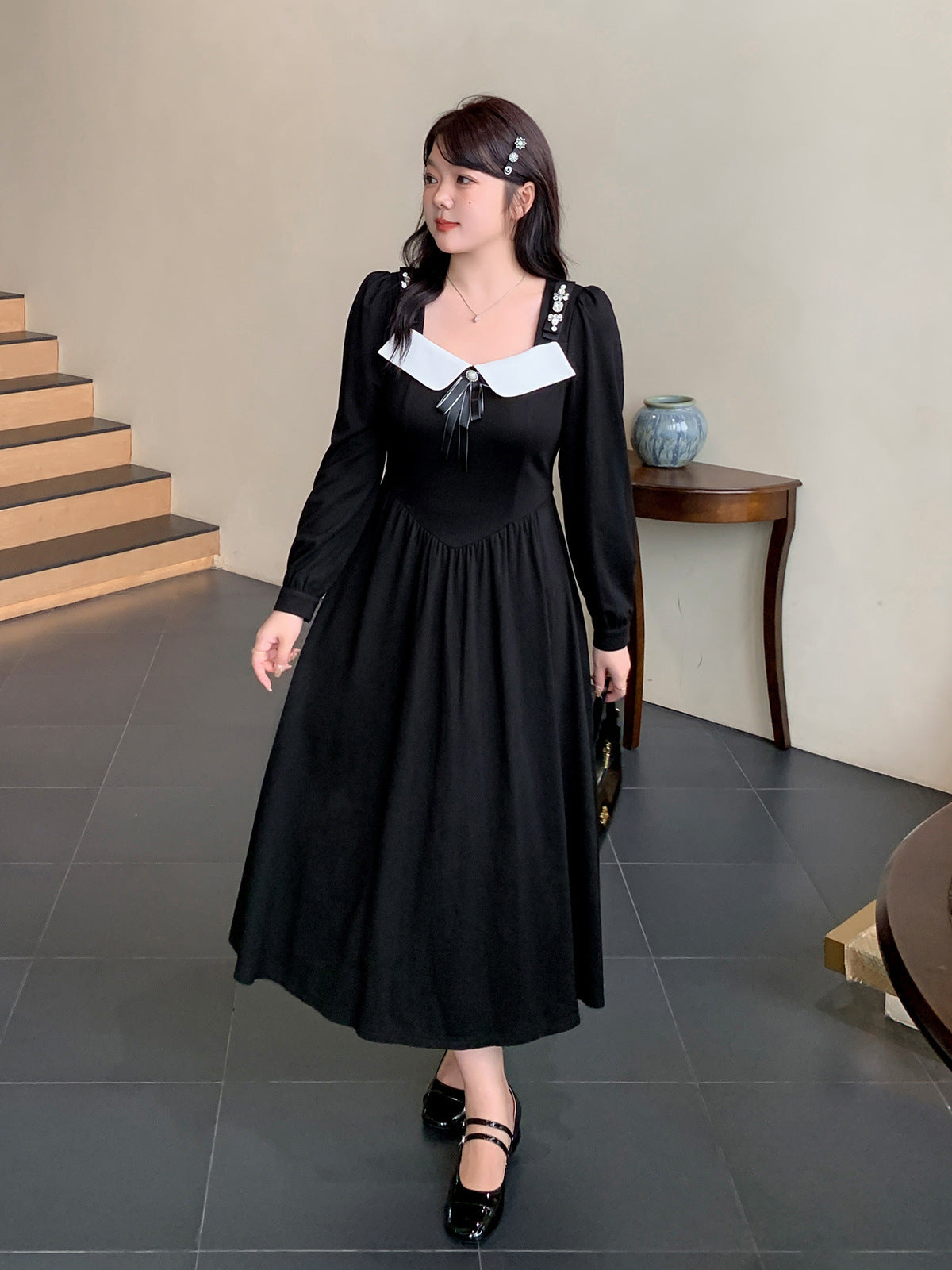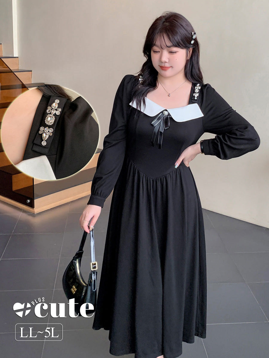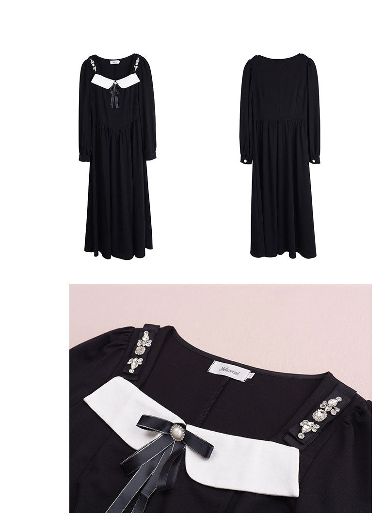 スクエアネックのフロントに輝くダイヤモンドとリボンがキュートなプリンセススタイルワンピースの登場です。柔らかく伸縮性のあるローマンニット生地を使用しており、重量感のあるデザインがシックでキュートな印象を与えます。肩に明るいダイヤモンドのジュエリーが装飾されており、キラキラと輝きを放っています。シンプルながらにお遊び心のあるアイテムをお探しの方にオススメです☆