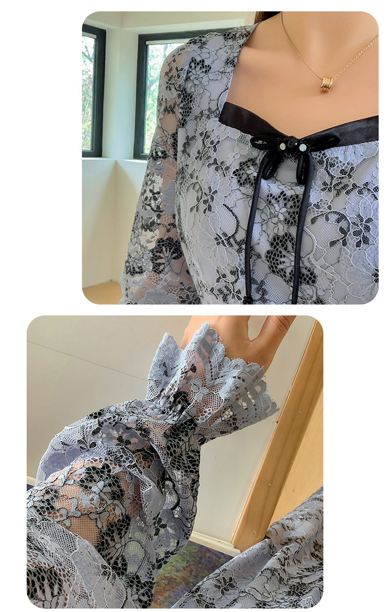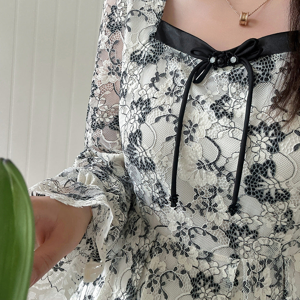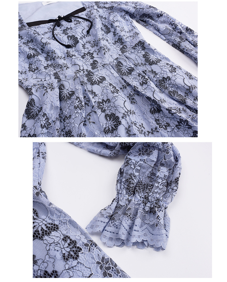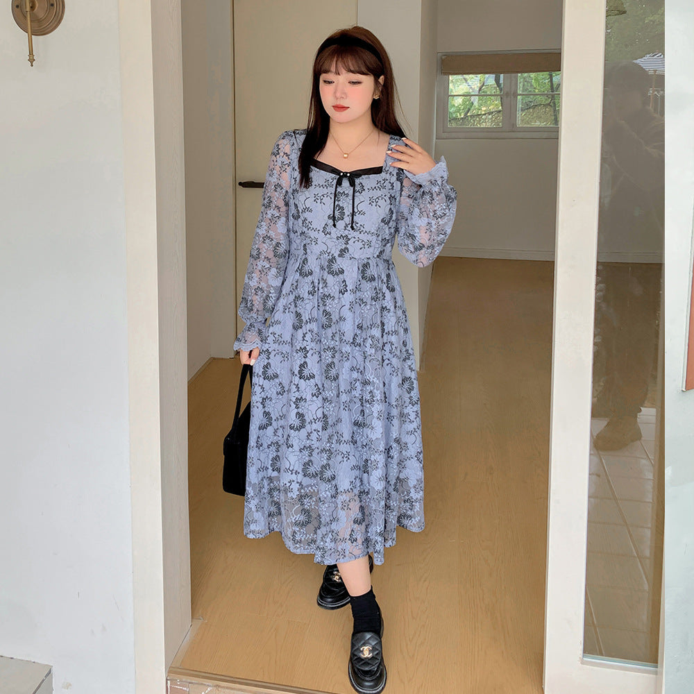 花柄レースが魅力的なレースドレスの登場です。レース生地には裏地が付いいています。フロント胸元には黒いリボンがついており、お姫様のような可愛らしい雰囲気をお楽しみいただけます。レトロでエレガントなパフスリーブは気になる二の腕をカバーします。袖口と後ろウエストには伸縮性のあるゴムバンドを使用。ウエストサイズに関係なく優雅で快適なスタイルをお楽しみ頂けます。