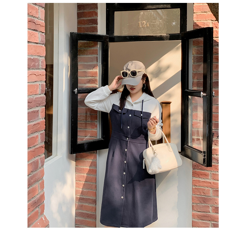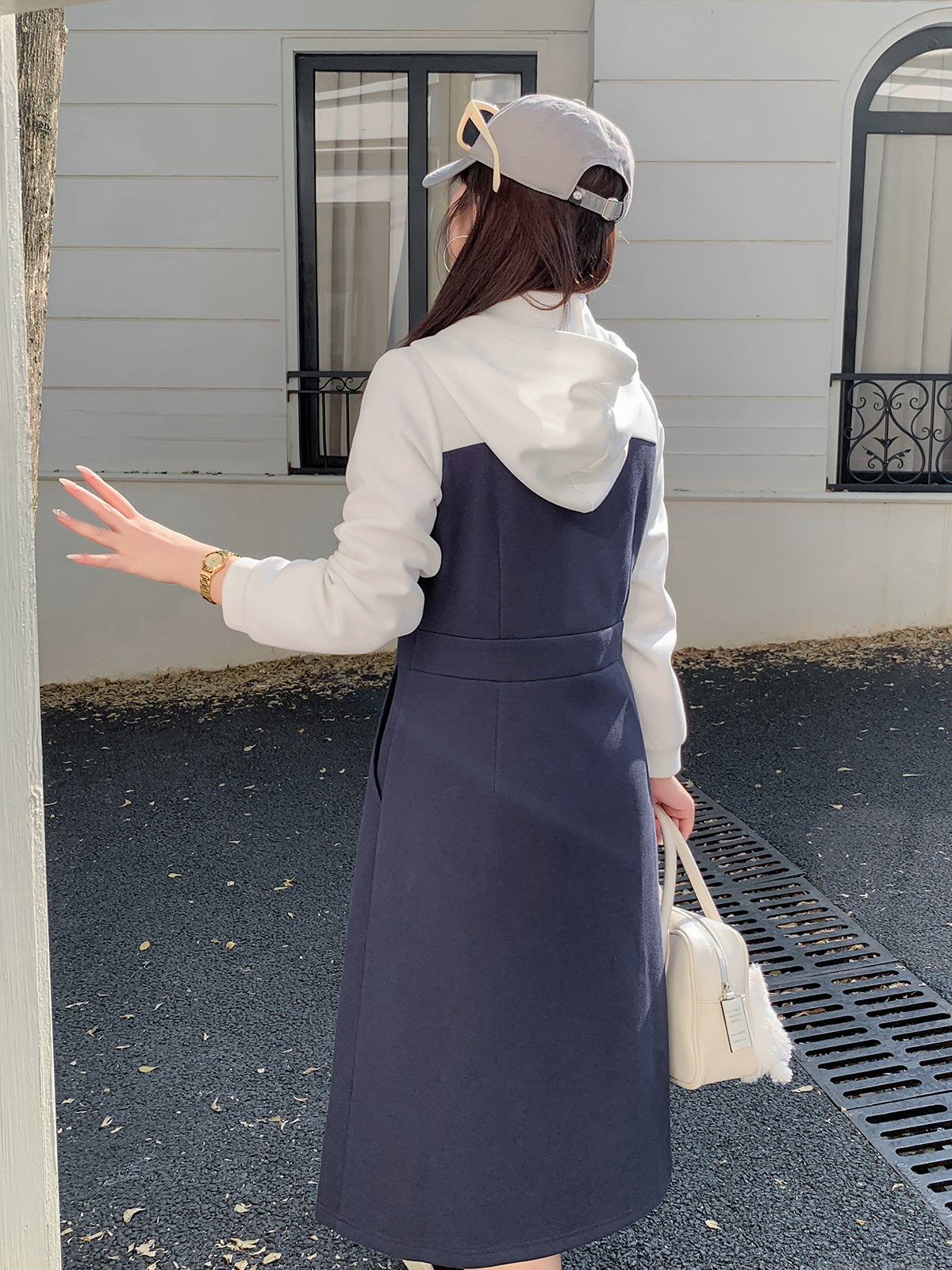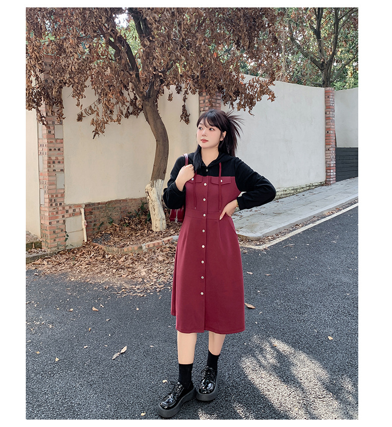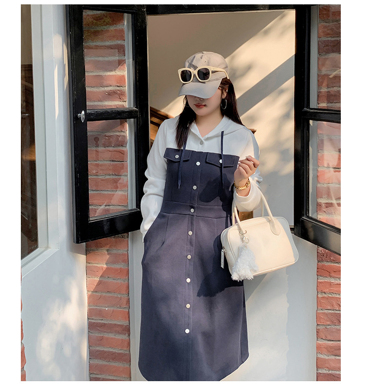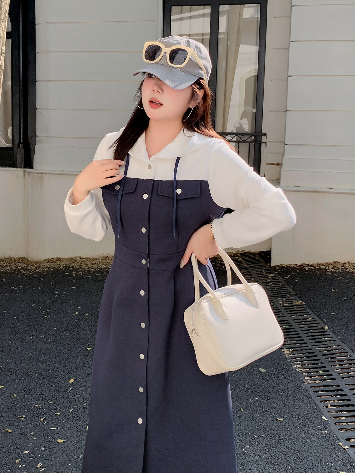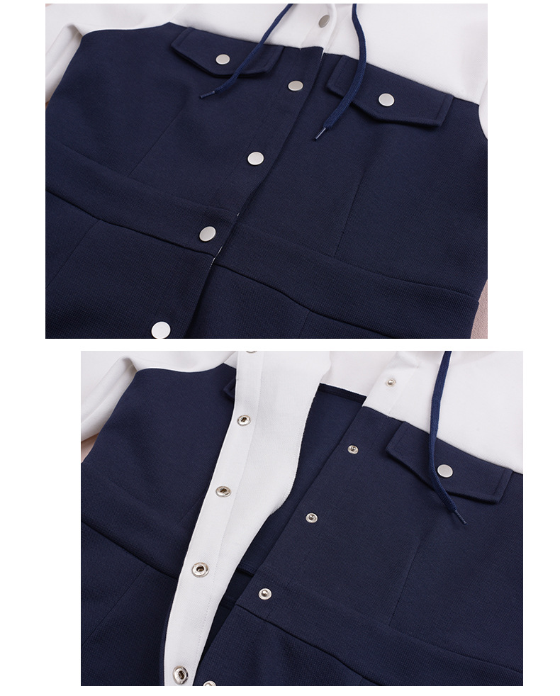 カジュアルバージョンのフェイクツーピースワンピースは、やや伸縮性があり、肌に優しい質感のピケニットコットン生地で作られています。フードの付いたデザインでフロントはスナップボタンが付いています。コントラストのあるカラーのデザインで、若々しく年齢を感じさせないスタイルでカジュアルでナチュラルな着こなしをお楽しみください。