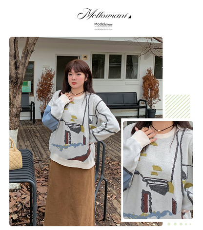 アーティストの印象派パターンのセーターは、コアスパン糸を使用しており、厚手で暖かく柔らかい着心地で高い伸縮性があります。いくつかのカラーブロックは編み方が異なる技術で作られています。ラウンドネックの形状で、ゆったりと快適でカジュアルにも合わせやすく、センスのある着こなしを是非お試しください。