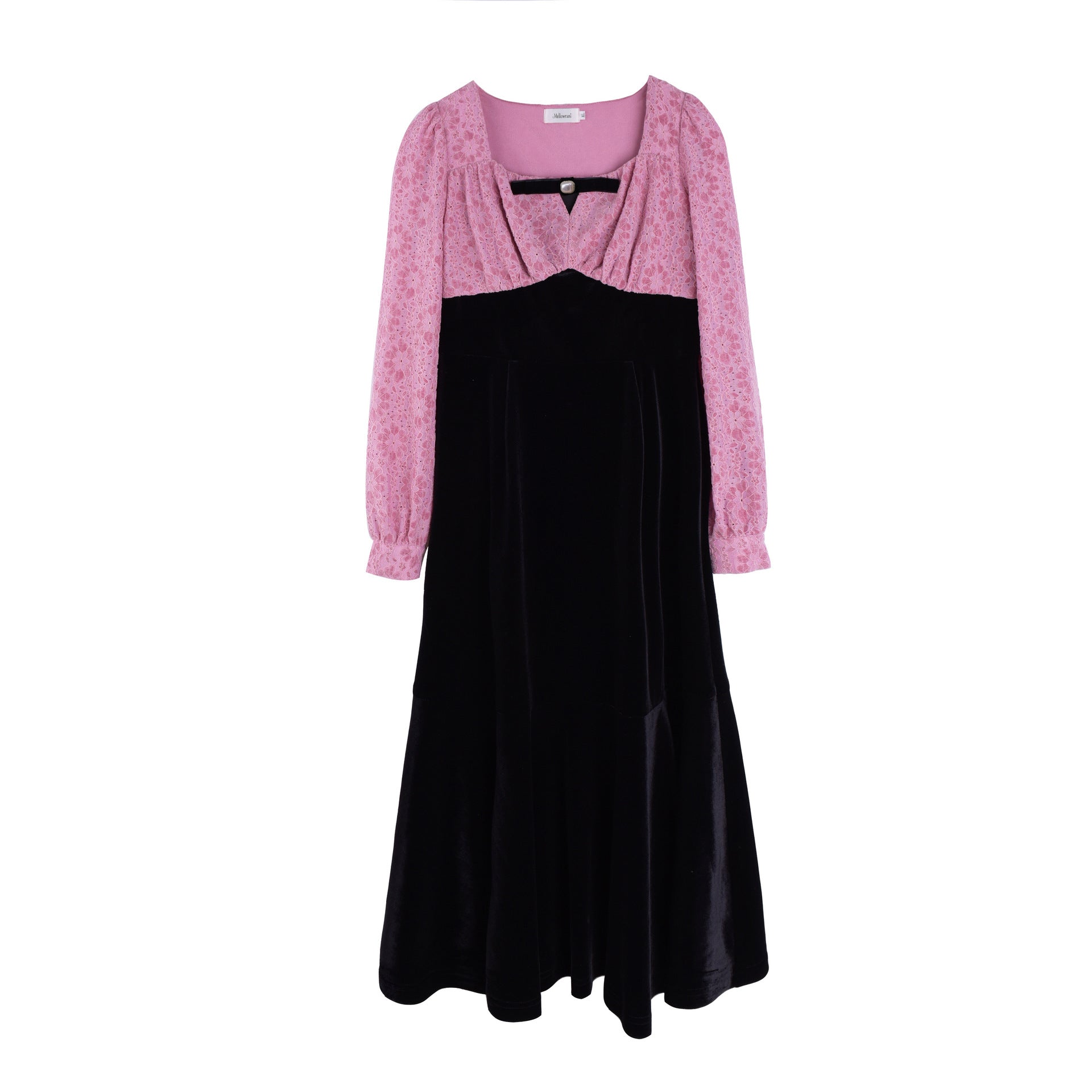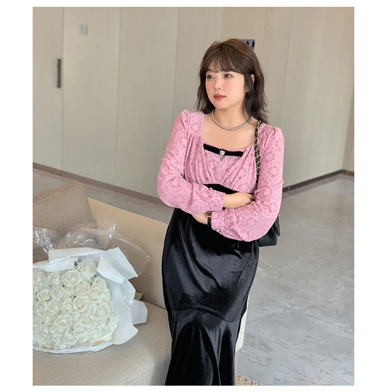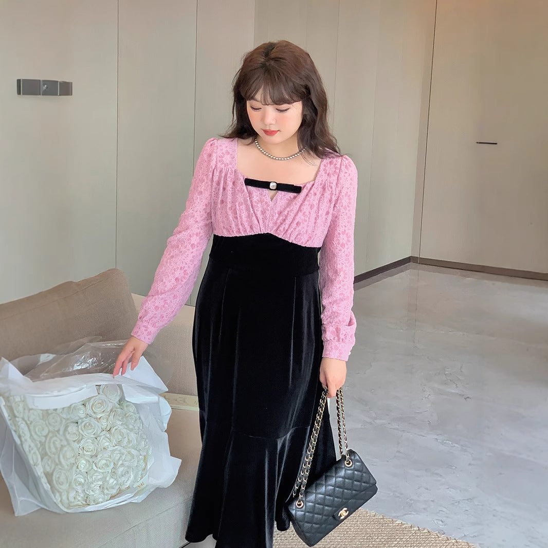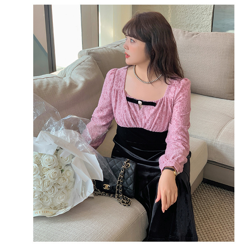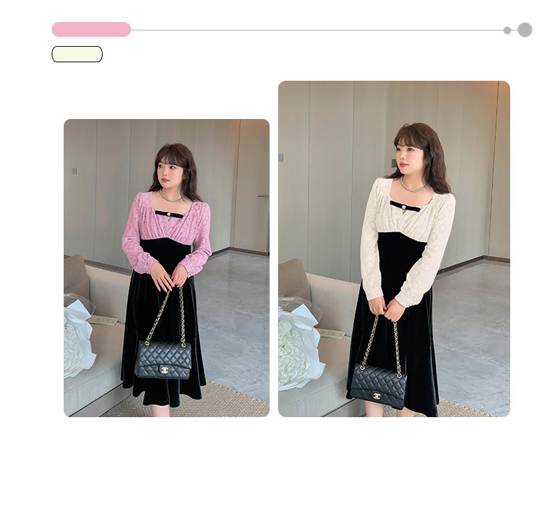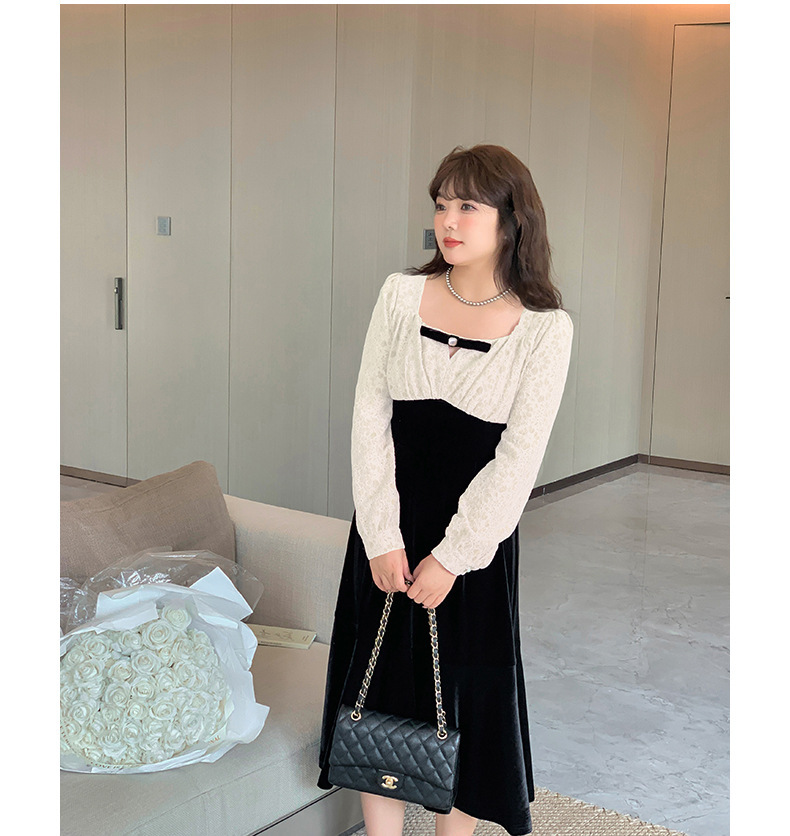 大きいサイズ レディース ヴィンテージ調レース切り替えベロアワンピース LL 3L 4L 5L